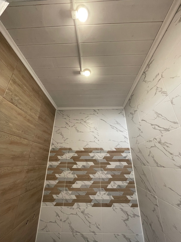 Отделка - вагонка,керамогранит, сибирский кедр