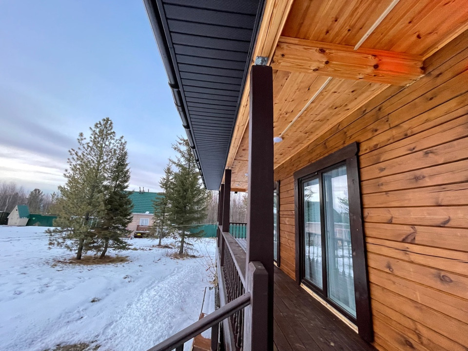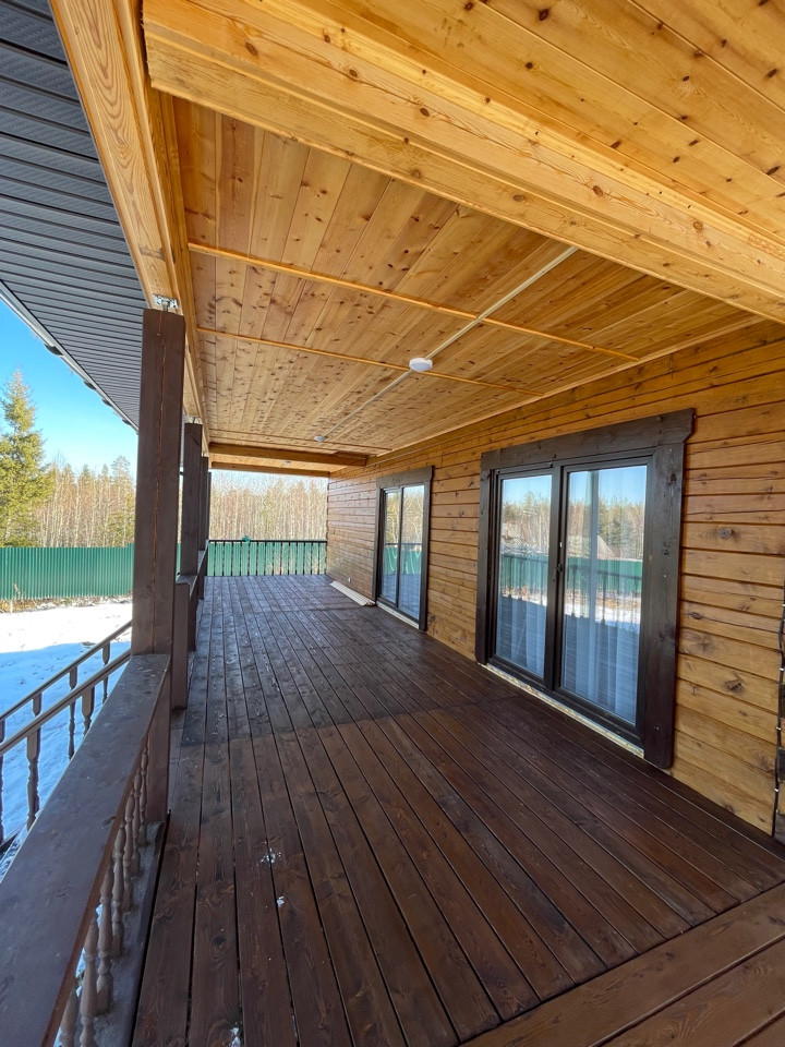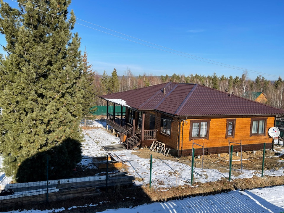 Дом выполнен по индивидуальному дизайнерскому проекту из профилированного бруса 180*180 мм. Фундамент - сваи- 49 шт. по 4 м. , отопление -теплый пол Водоснабжение- скважина 40 м Кровля - металлочерепица с двойным утеплением. Полы - бетонные. Электричество 25 кВт Септик - отдельно для дома и бани