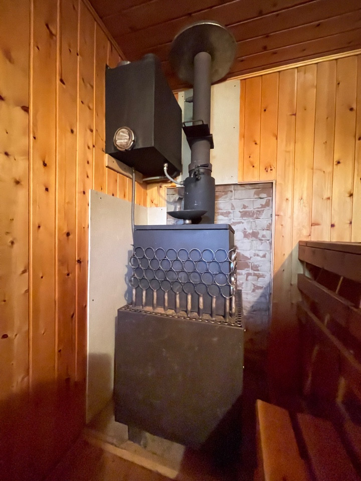 Отделка - вагонка, керамогранит, сибирский кедр Функциональная печь ручной работы ,выполнена из стали 6 мм, не прогорит как минимум 50 лет.
