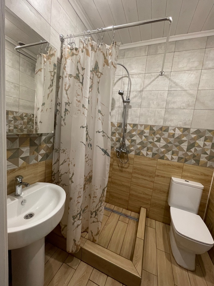 Планировка: Большая кухня-гостиная, 3 уютные спальни,( одна из них мастер спальня, со своим санузлом) , один общий санузел, прихожая, кладовая (или гардеробная), тех. помещение (электрощитовая, котёл отопления (6, 9 и 15 кВт), бойлеры горячей воды (2*100 л), гидроаккумулятор системы водоснабжения, стиральная машина)