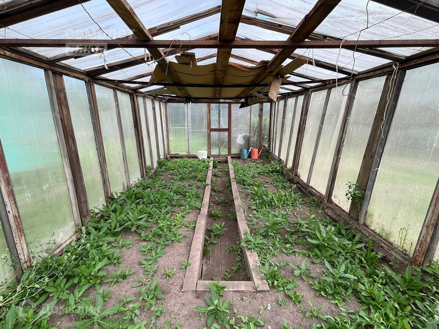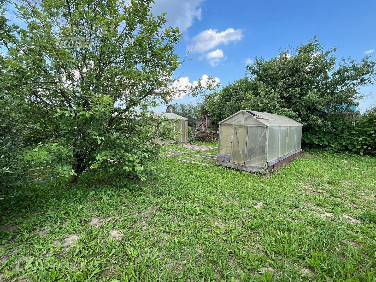Установлены 2 хорошие теплицы (с фундаментом).