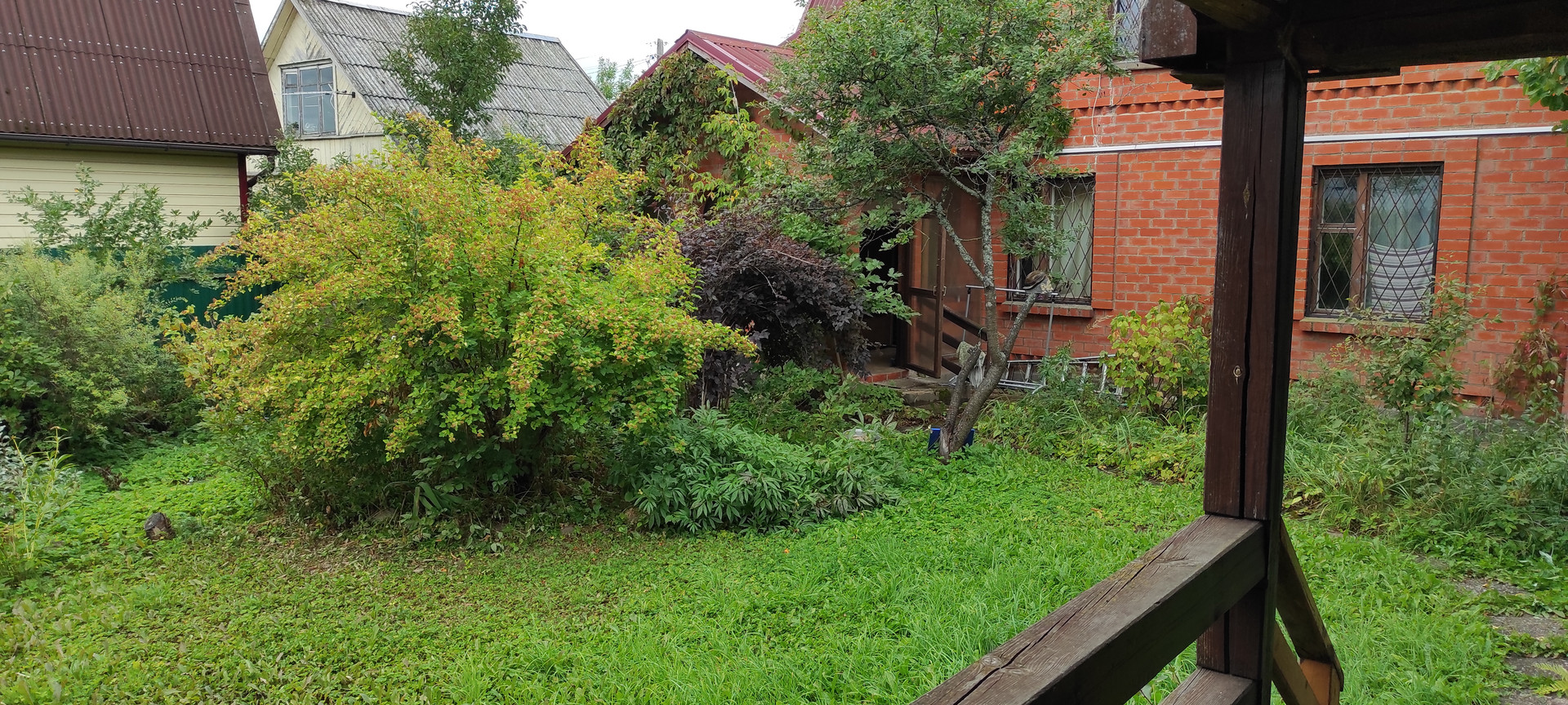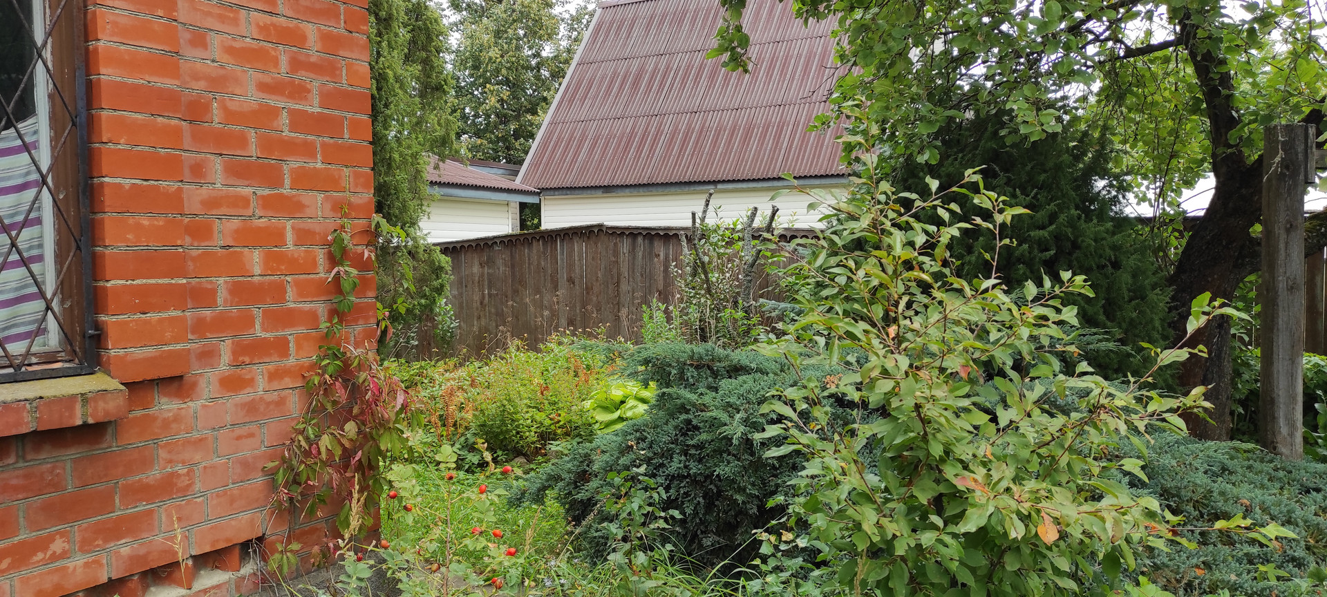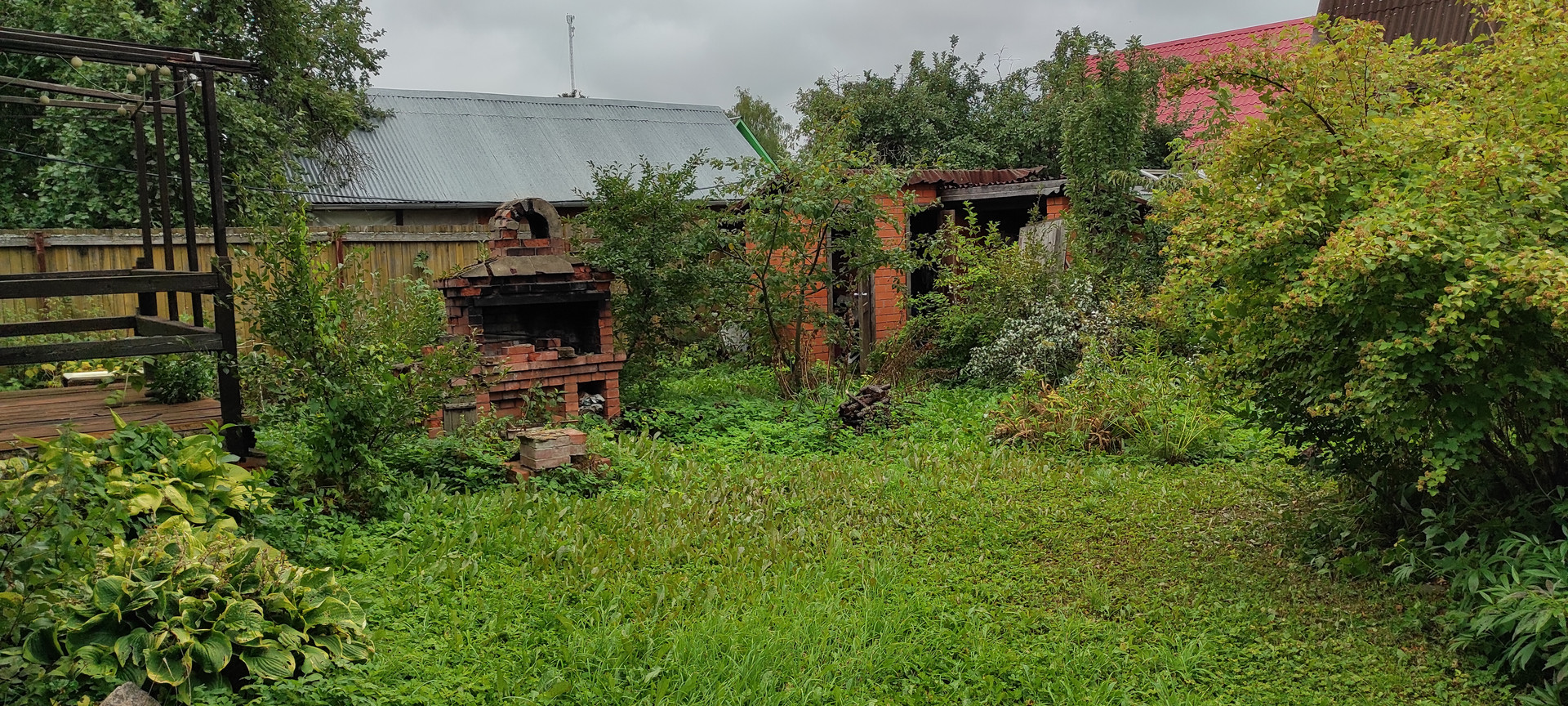 на участке :    мангальная зона ,  колодец , много плодоносных деревьев и кустарников.