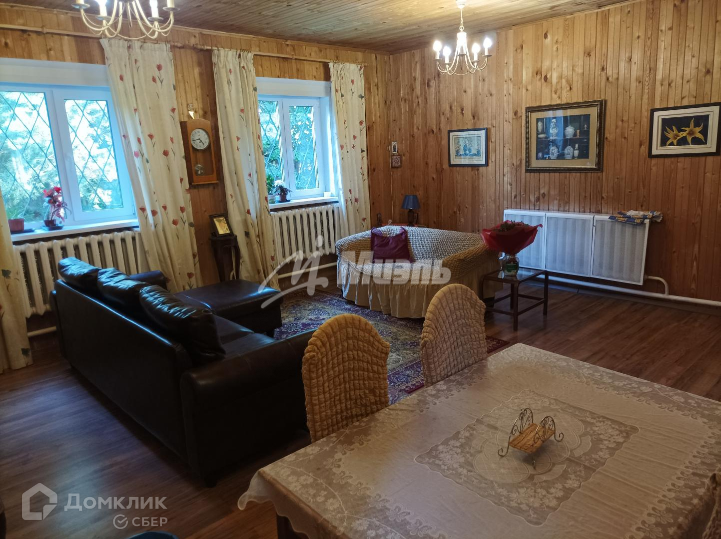 Материал стен — бревно. Снаружи 2 слоя утеплителя и сайдинг. Новые окна ПВХ.