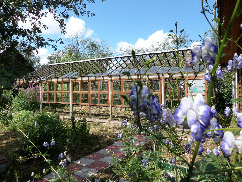 Теплица - сейчас такие не делают, из металлического уголка и стекла, ну очень большая!