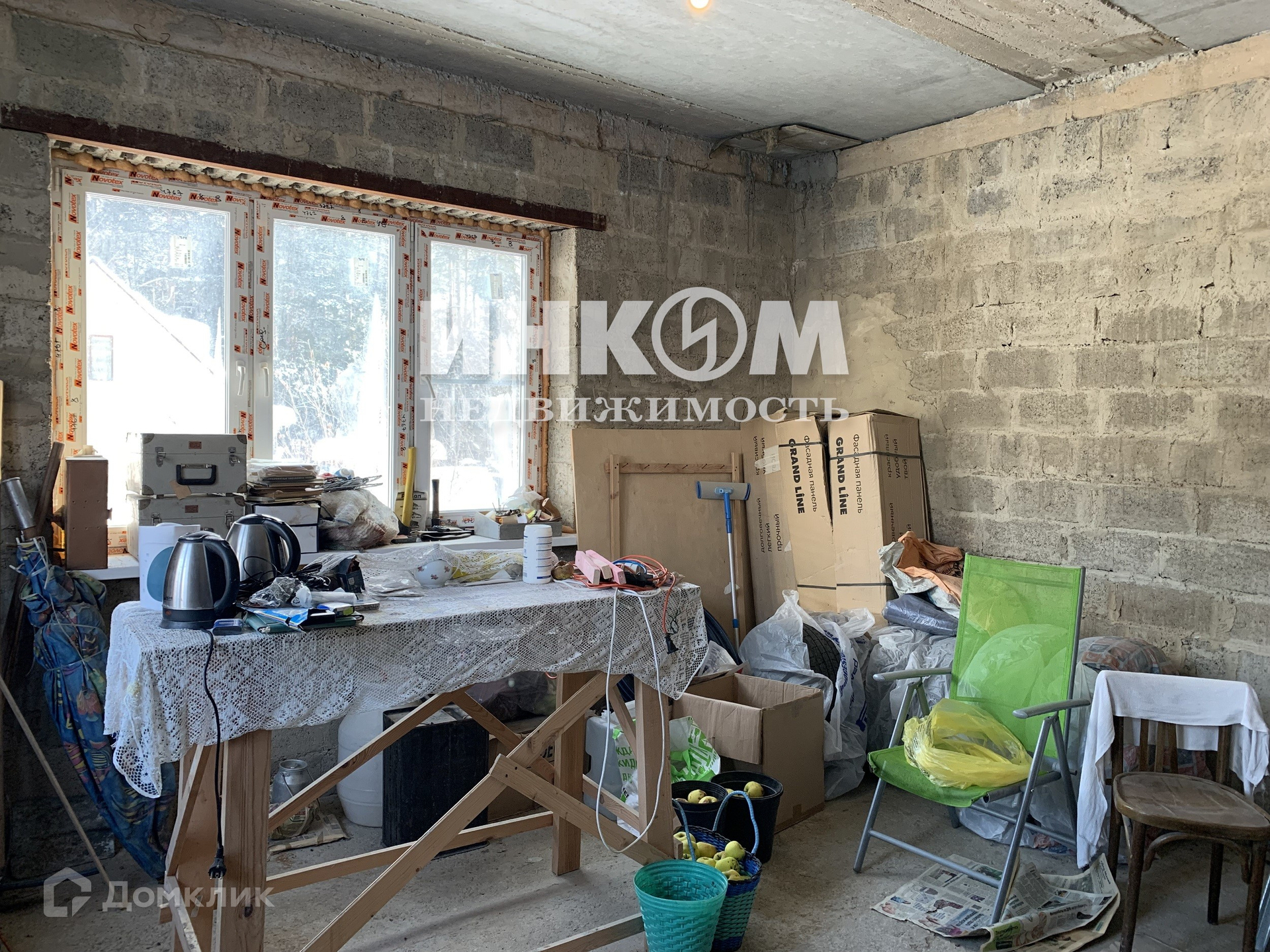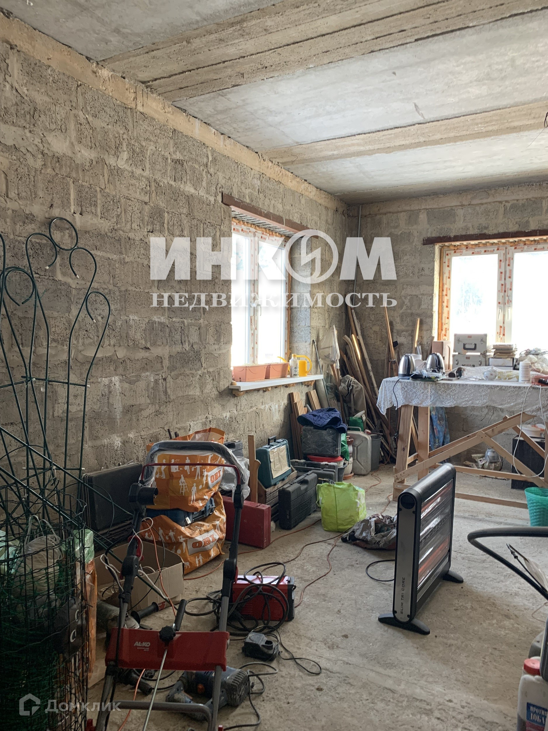 Конструктив дома - газобетон с монолитными перекрытиями. Фундамент - заливной цемент, металлоконструкции. Крыша на блоках, с бетонными перекрытиями, дерево, черепица. Фасад отделан панелями. Сделана гидроизоляция снаружи и внутри, разводка коммуникаций. Электричество - 2 фазы по 15 кВт, отопление, канализация (стеклопластиковая ёмкость 12 кубов, выгребная яма. Возможность проведения газа (проходит по границе в поселке). 2 колодца по 6 колец. Слив для дождевой воды и грунтовых вод, насосом.
