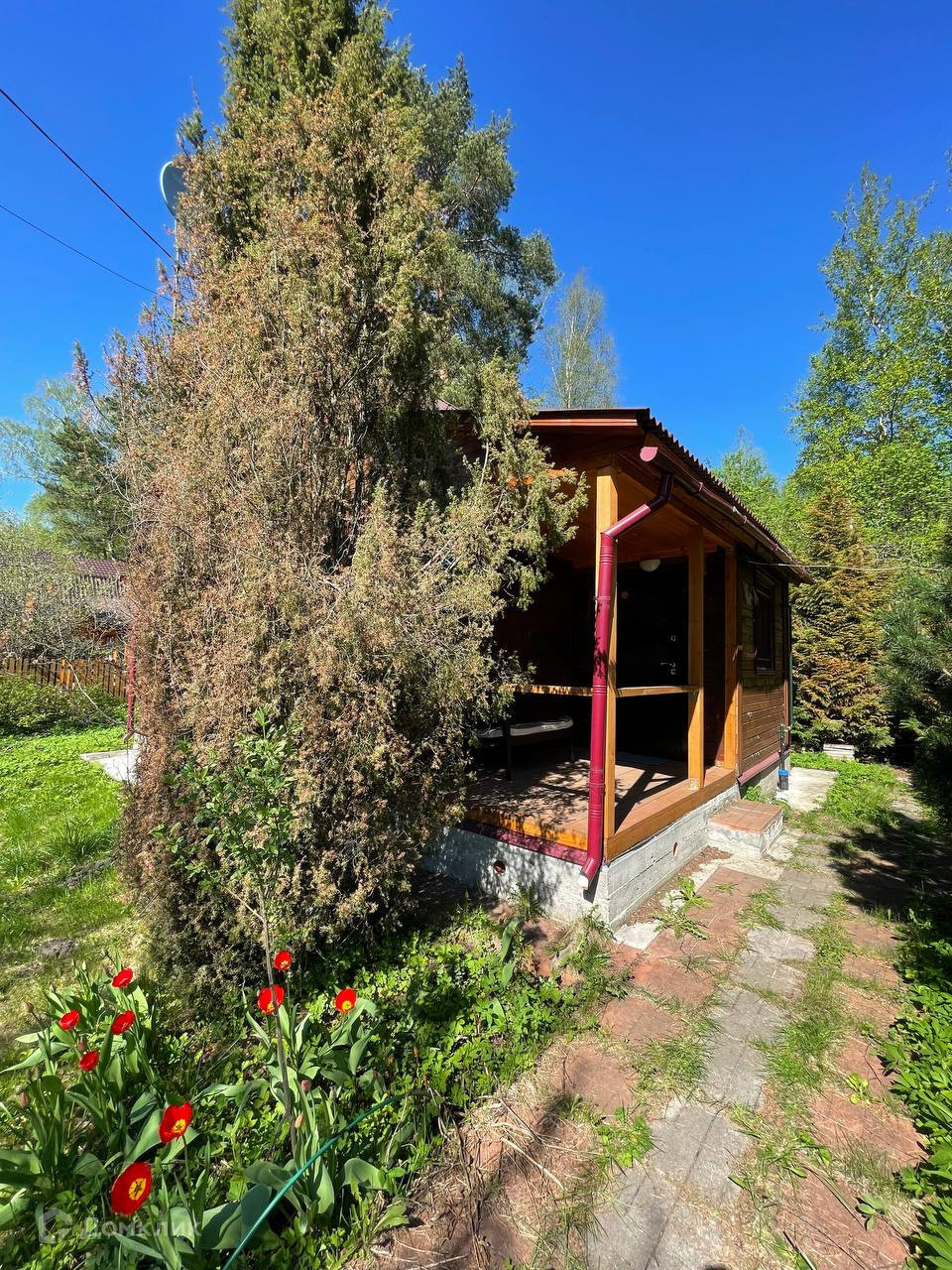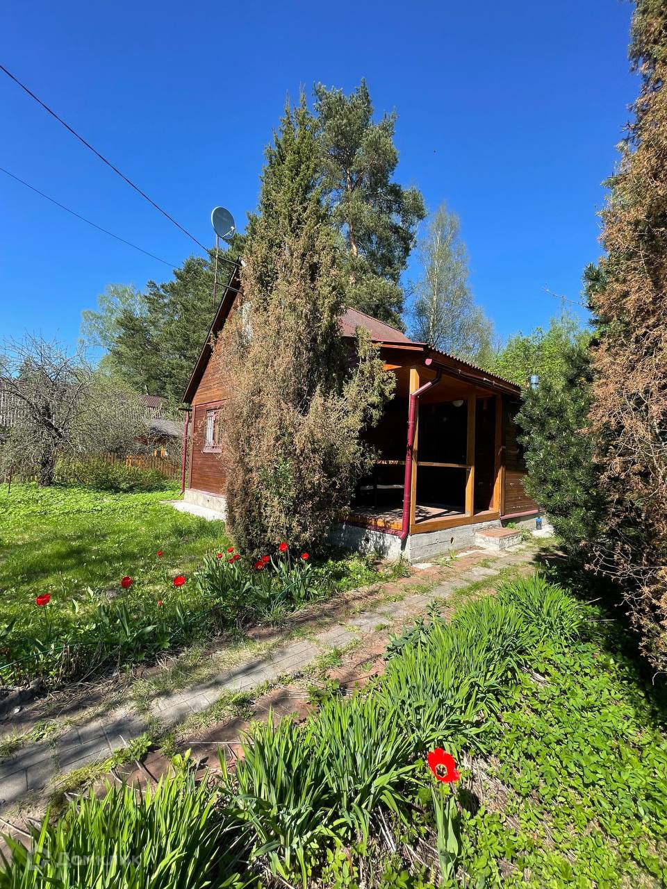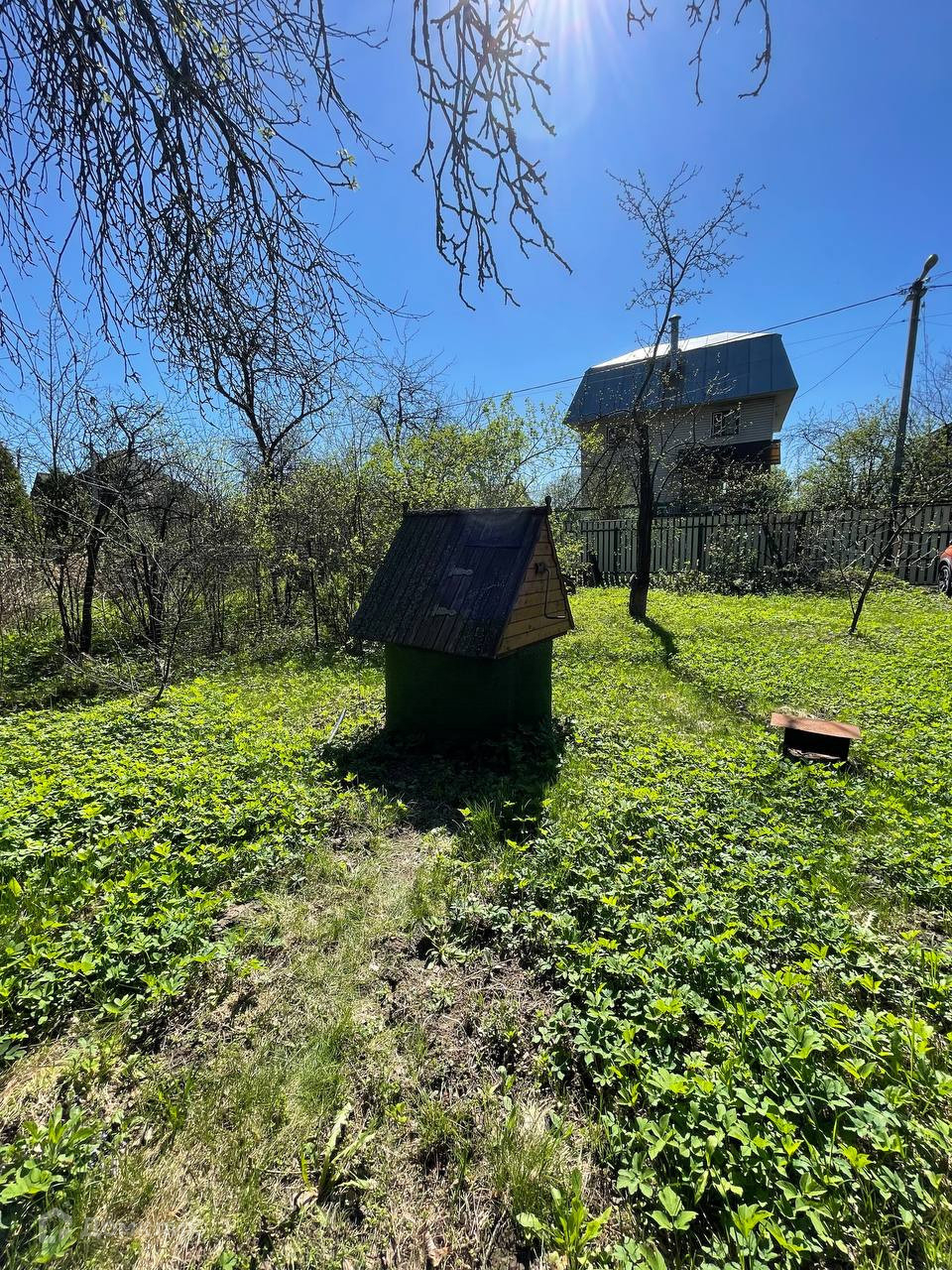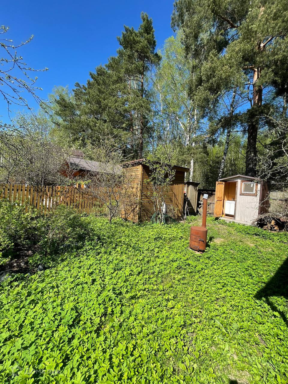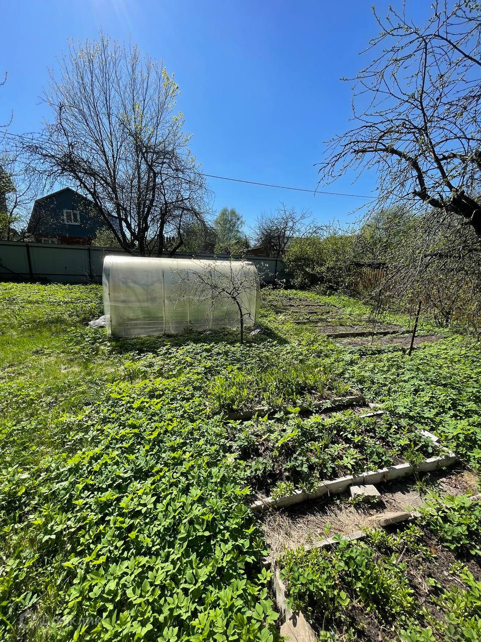Участок огорожен забором ровный и сухой, растет много плодоносящих деревьев и кустарников, так же есть много красивых декоративных деревьев и елочек!