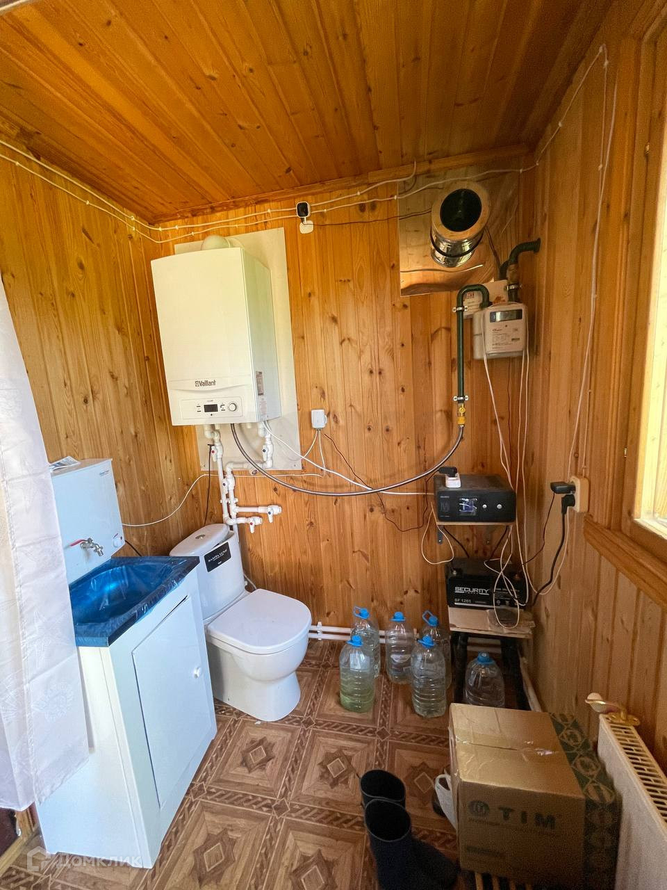 Открытая веранда у дома и кухни для комфортного отдыха. В доме установлена хорошая входная дверь с терморазрывом. Планировка дома: 1 этаж: 3 спальни и прихожая, отдельное помещение в котором размещен газовый котел и заведены коммуникации (планировался санузел, вся сантехника есть. Так же в дом заведена канализация и водопровод от колодца для организации круглогодичного проживания. Канализация биосептик Терра.  2 этаж: 1 большая комната. Дом отапливается магистральным газом (котел Vaillant TurboFIT 24 кВт).  В доме установлены радиаторы отопления Kermi.  Отопление дома, регулируется дистанционно автоматикой Zont c мобильного приложения, а также установлена система бесперебойного питания для газового котла.