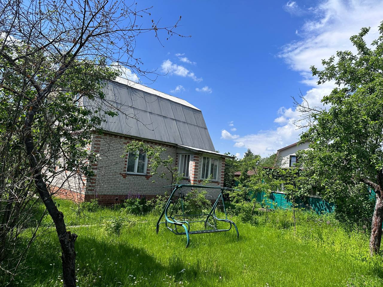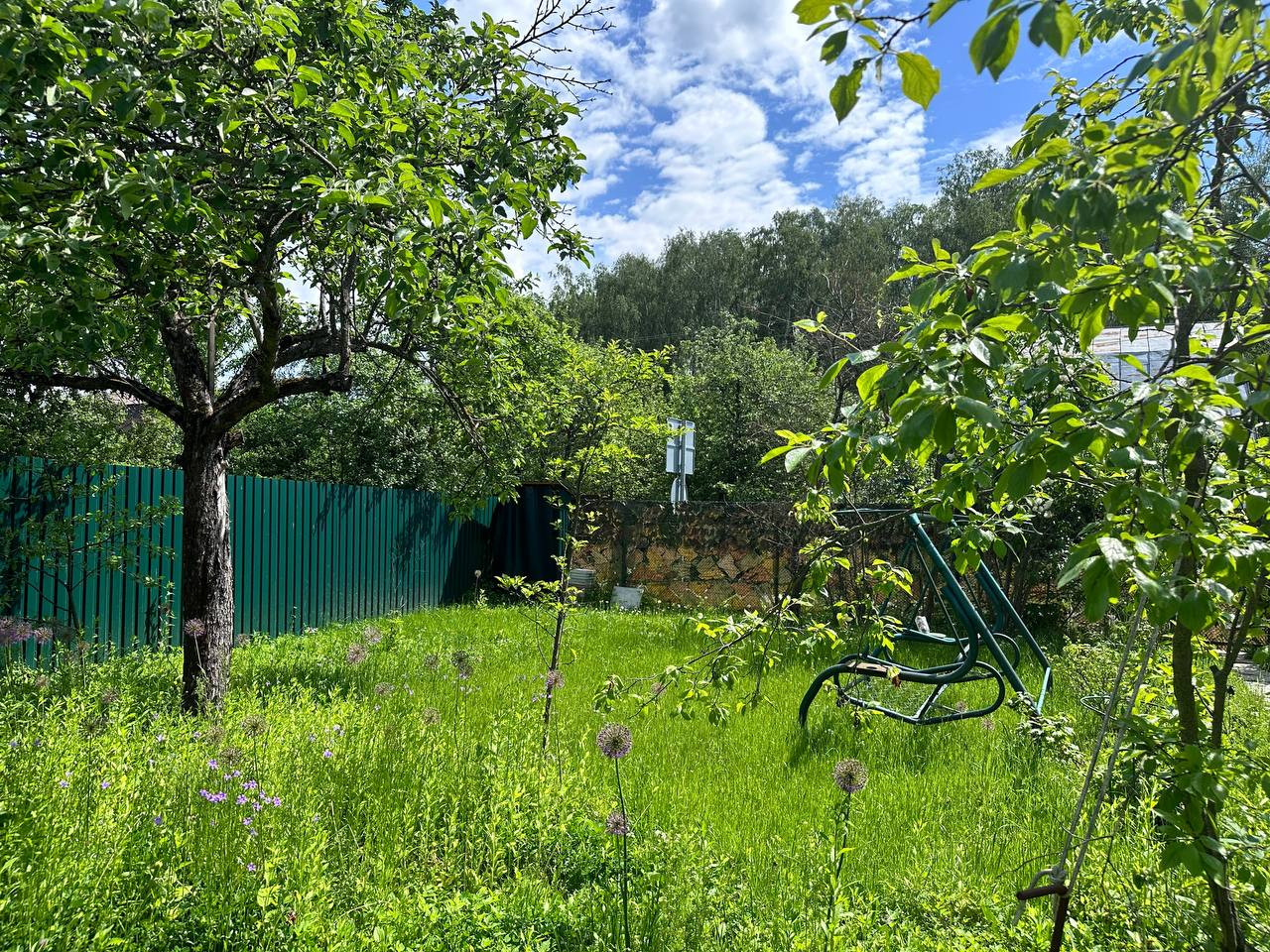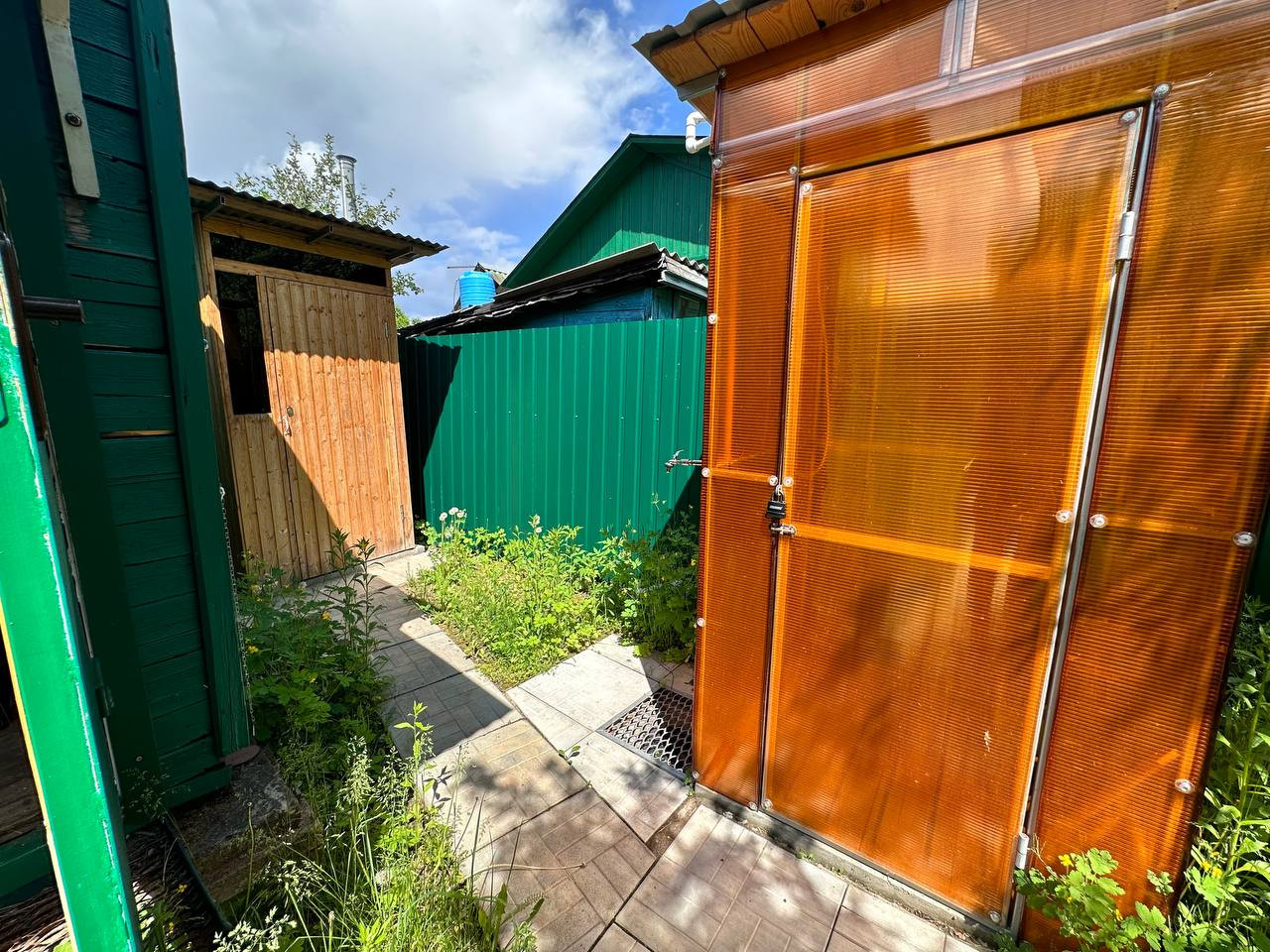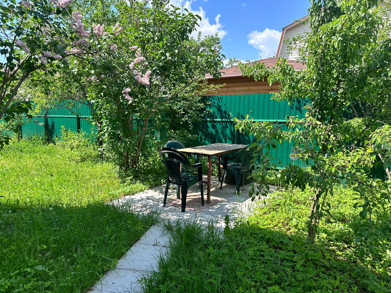 На участке машиноместо, мангальная зона, качели, туалет, теплый душ с подогревом. Яблоневые деревья, виноград, смородина.