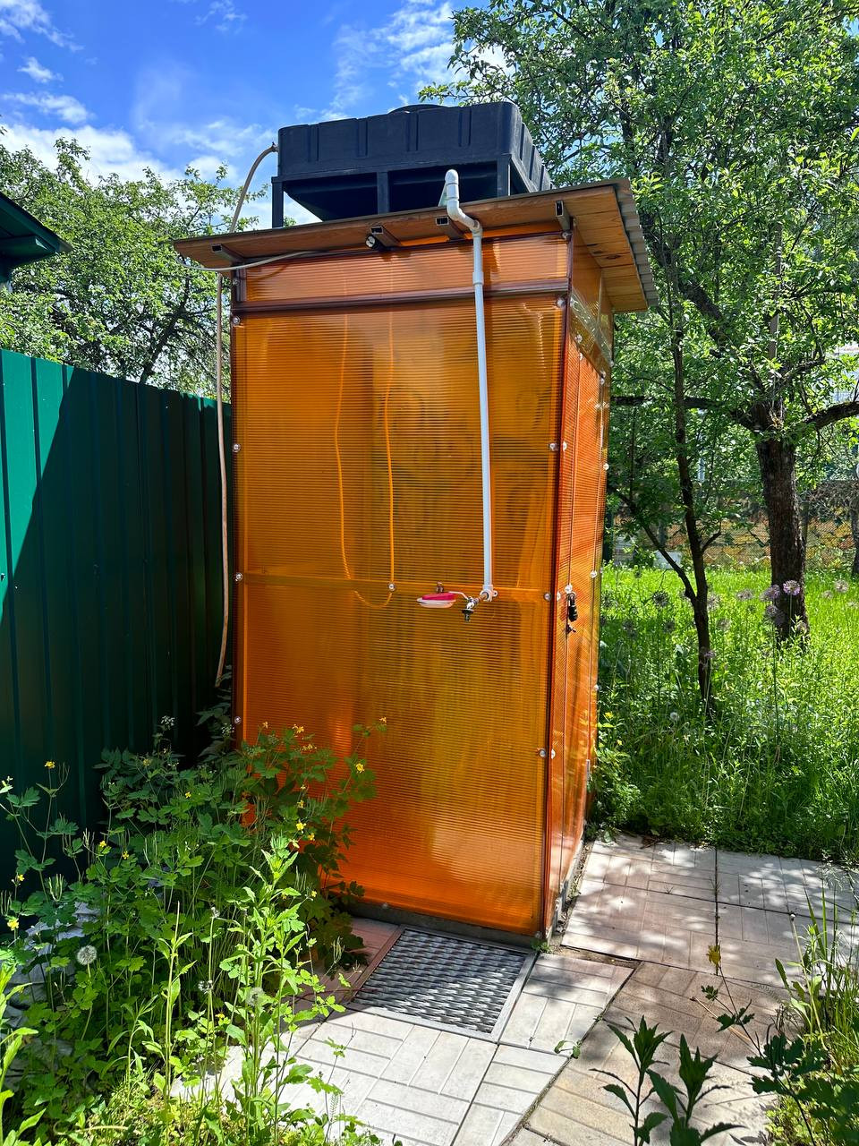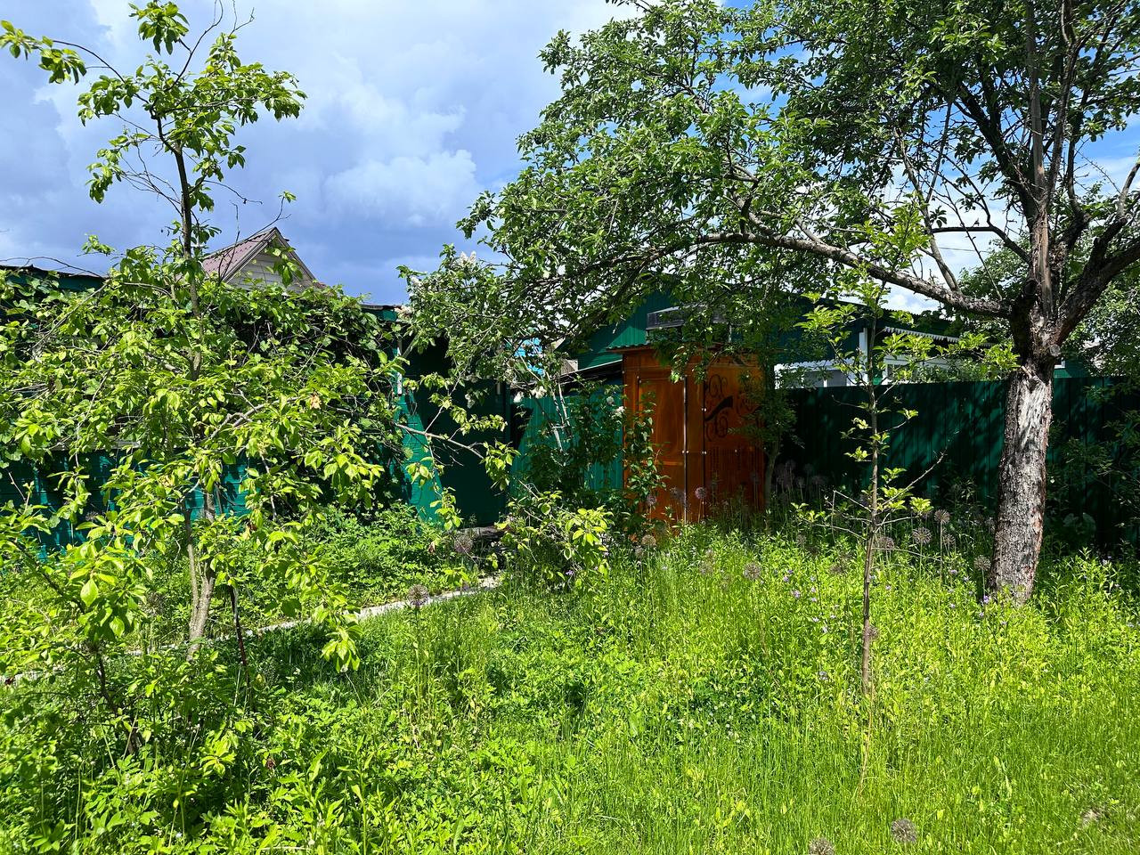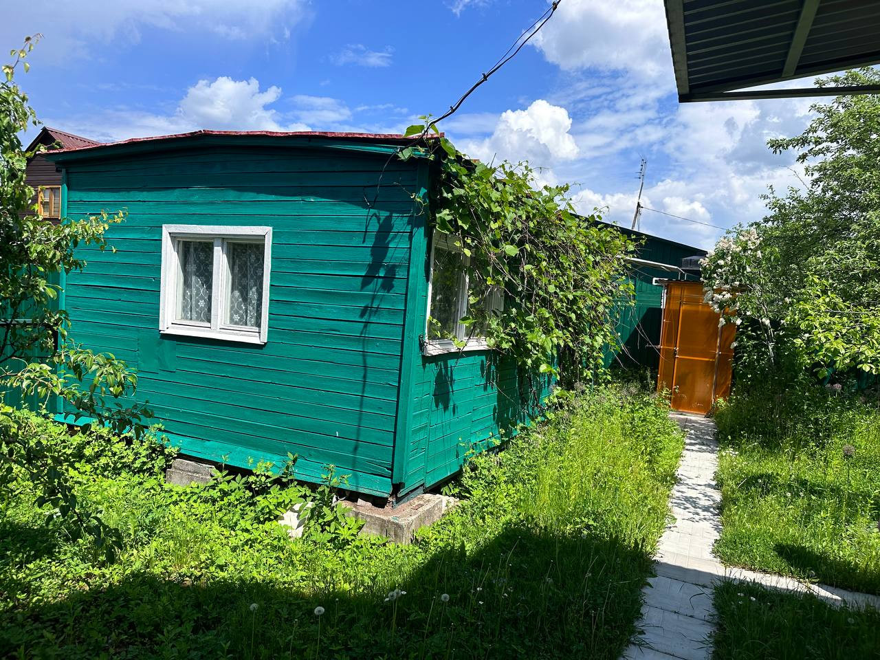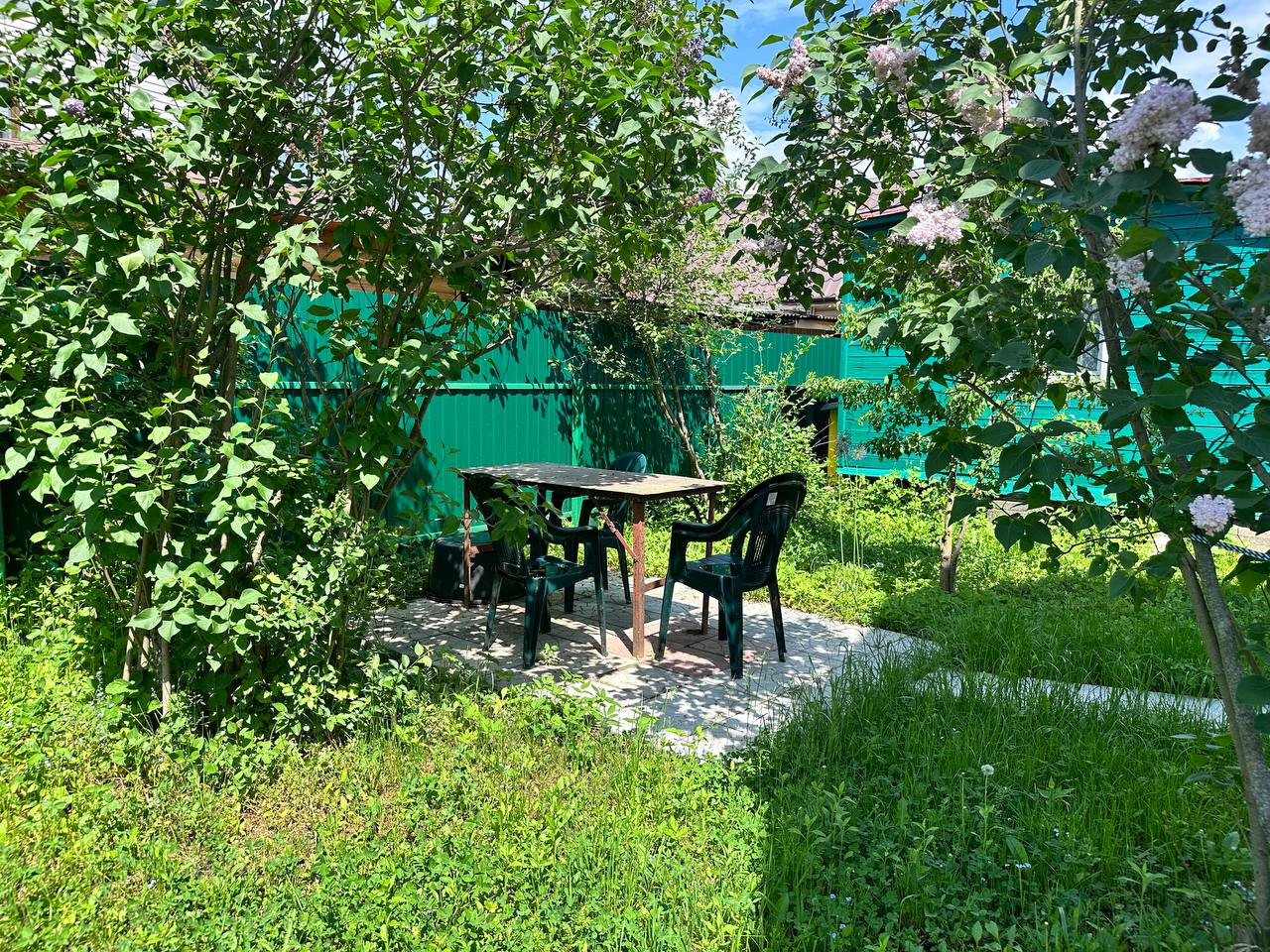 На участке машиноместо, мангальная зона, качели, туалет, теплый душ с подогревом. Яблоневые деревья, виноград, смородина.