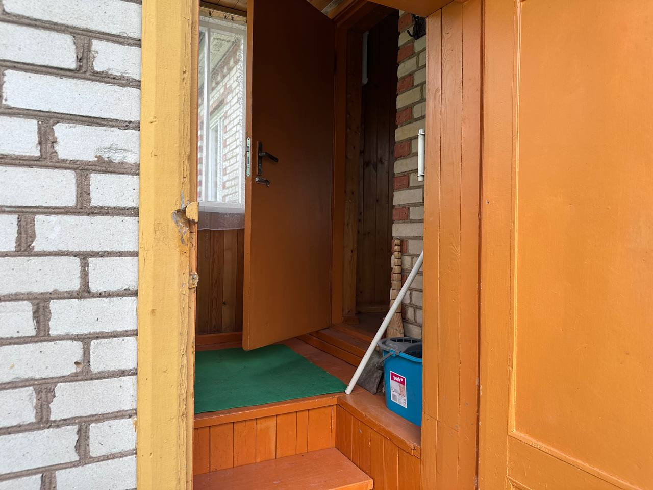 Дом построен из кирпича, тёплый.