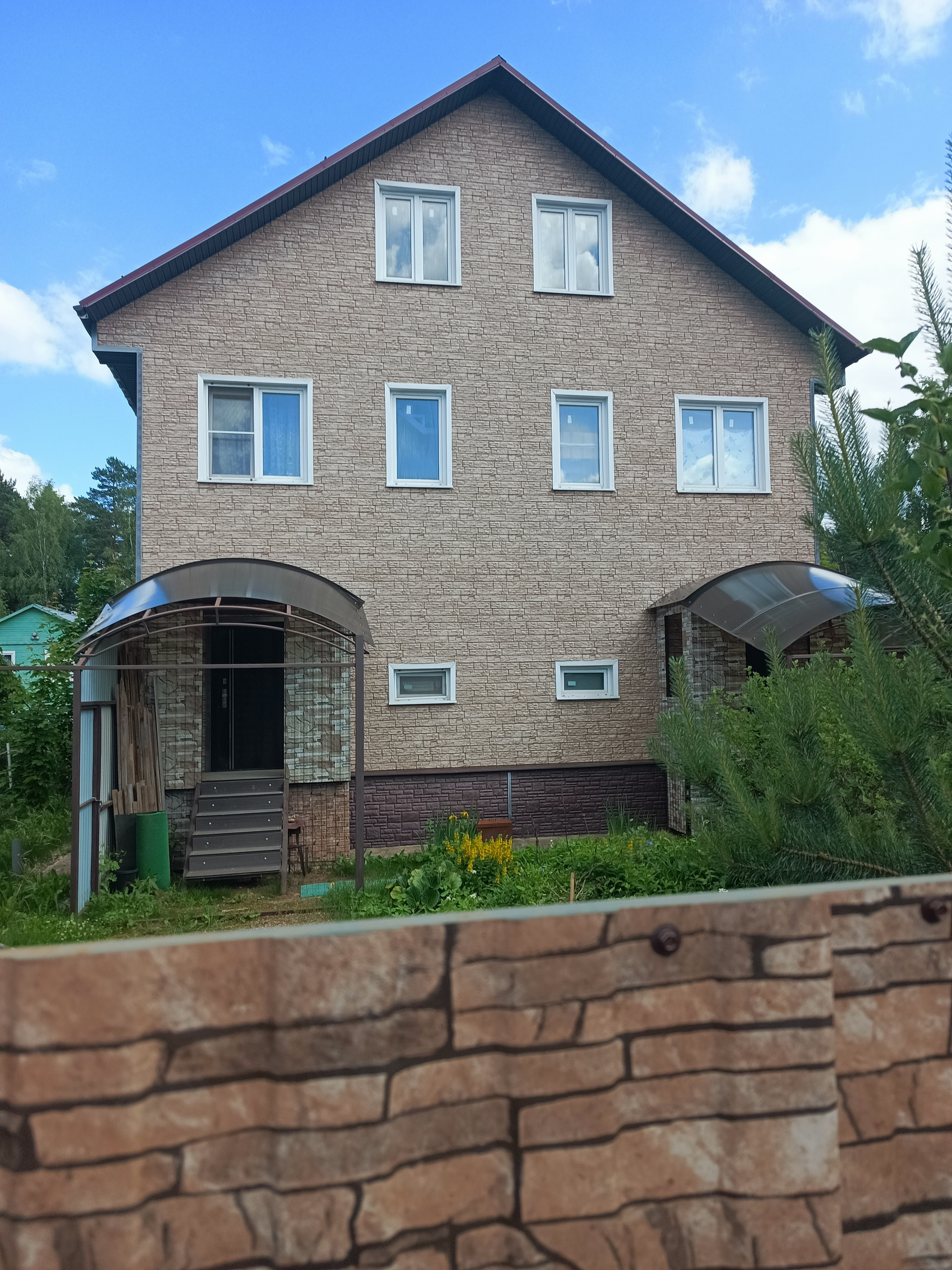 В доме есть все удобства для проживания , два туалета , два душа, ремонт сделан в 2 комнатах на 3 уровне в левой половине дома очень качественно и капитальными материалами на века, в дом заведены под землёй 3 фазы по 15 киловатт,