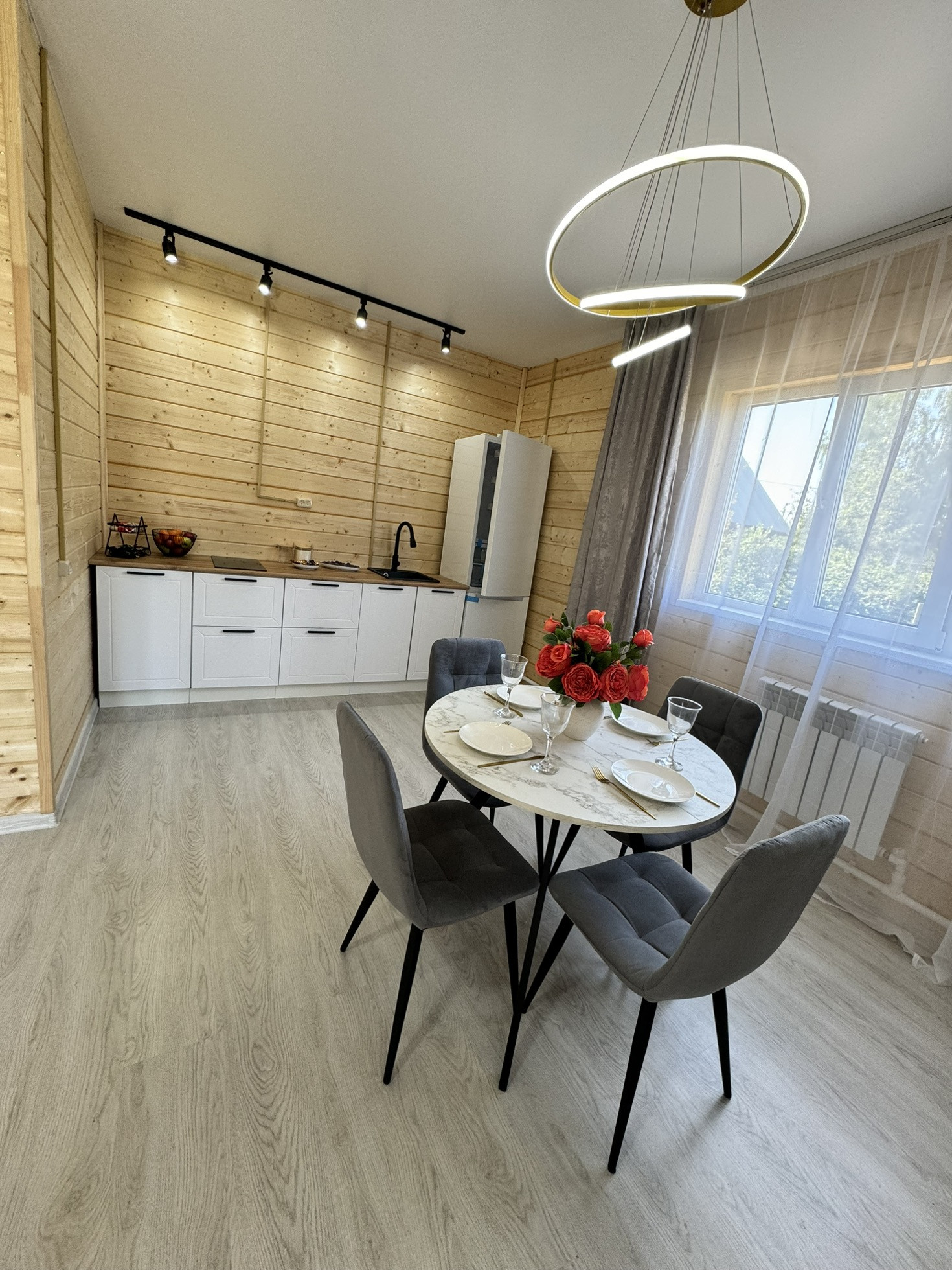 aбcoлютно новый дом! все удобства в доме . Электричество ⚡️вода  канализация , в доме установлен электрический котёл , электрический бойлер для горячей воды , душевая кабина , система водоподготовки , скважина для воды , септик , отопление от котла в доме тепло и комфортно! Планировка удобная с двумя  спальнями, тамбуром и большой кухней-гостиной . Дом построен по каркасной технологии, стены 150мм, пол и потолок 200мм, утеплён и обшит по технологии современного каркасного домостроения , окна пвх  , вся электрика с использованием медного кабеля .