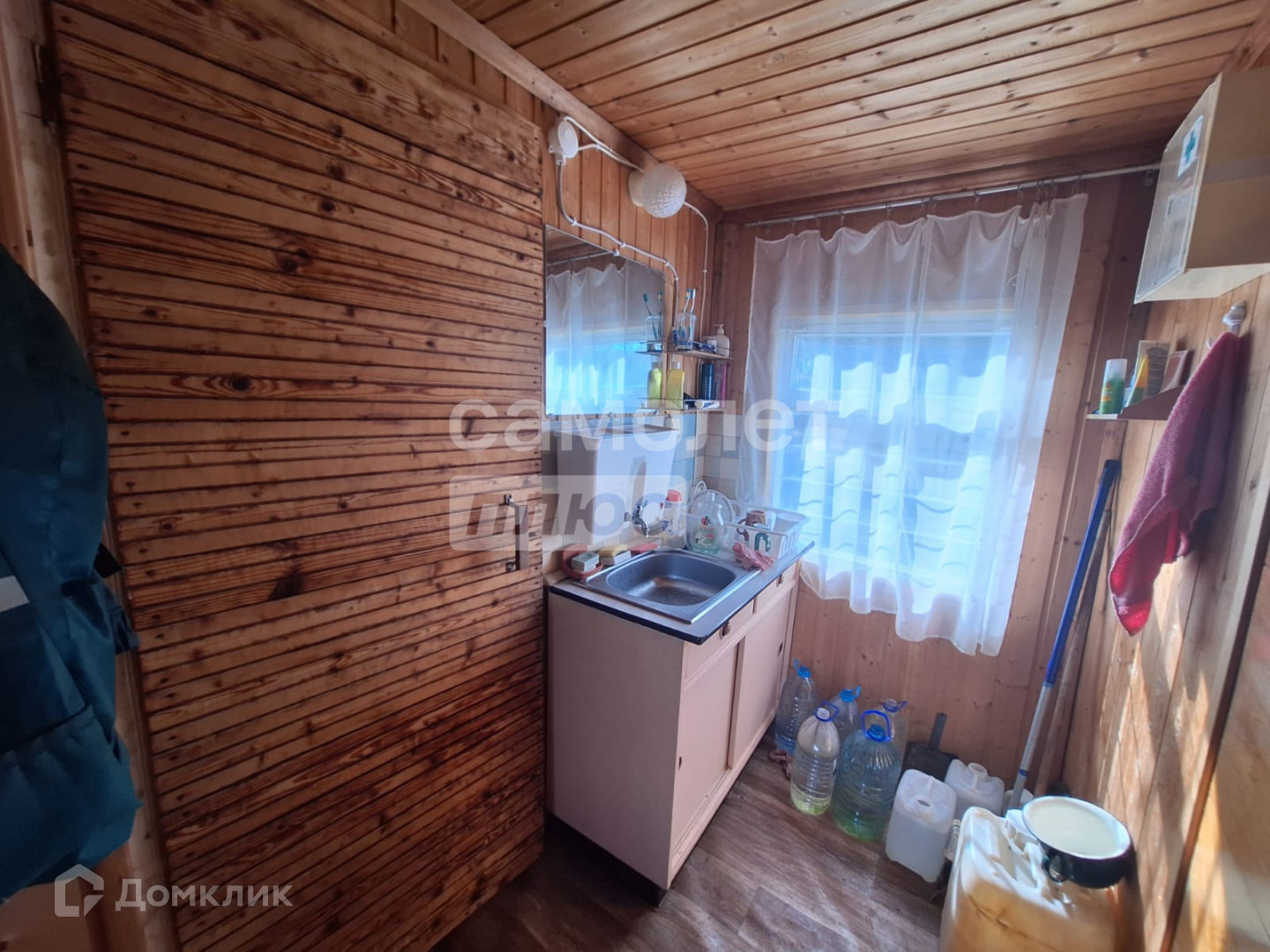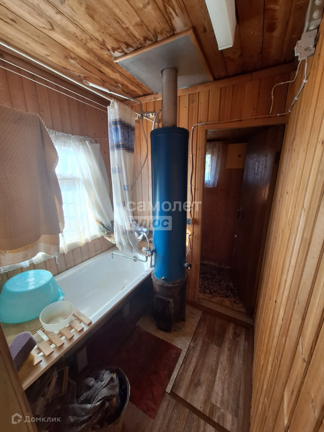 Также есть хозяйственный блок с кухней, где стоит чугунная печь, заведена вода,