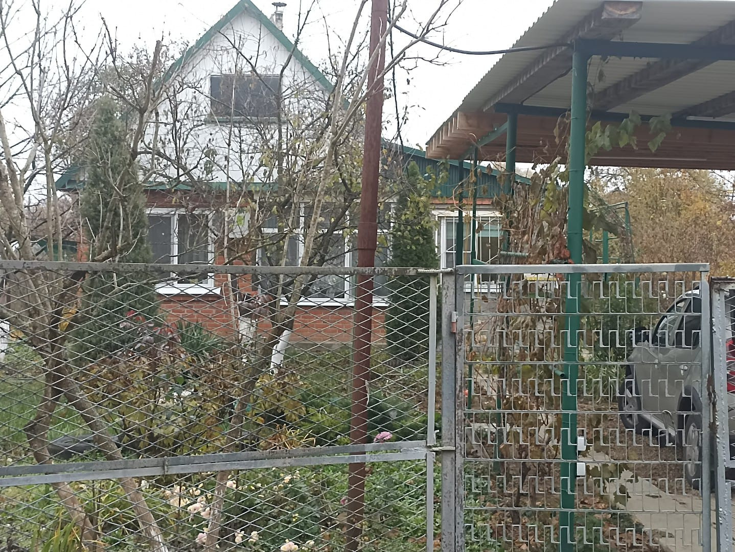 Есть большой навес на два автомобиля. Хоз постройки.