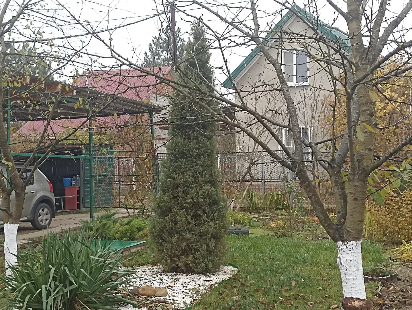 На участке есть множество плодовых деревьев таких как черешня, вишня, яблоня, айва, персик, также малина, клубника, ежевика, крыжовник, смородина красная и белая.