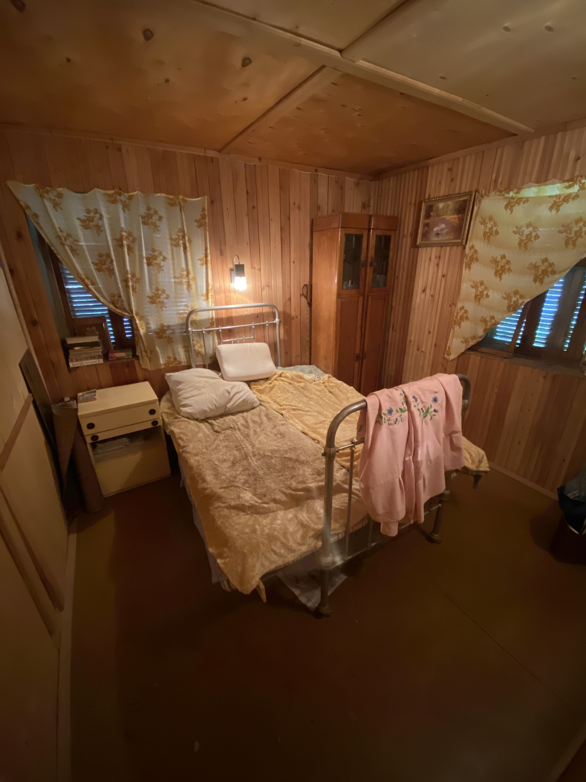 В даче первый этаж - веранда, кухня, прихожая-гостиная, две спальни, кладовка, погреб, лестница на второй этаж. На втором этаже просторная свободная планировка.
