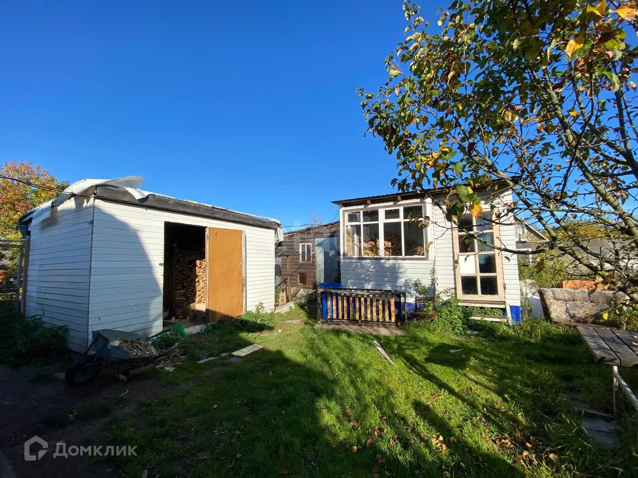 На придомовой территории находится: гараж, баня с предбанником (свет заведен), дровенник.