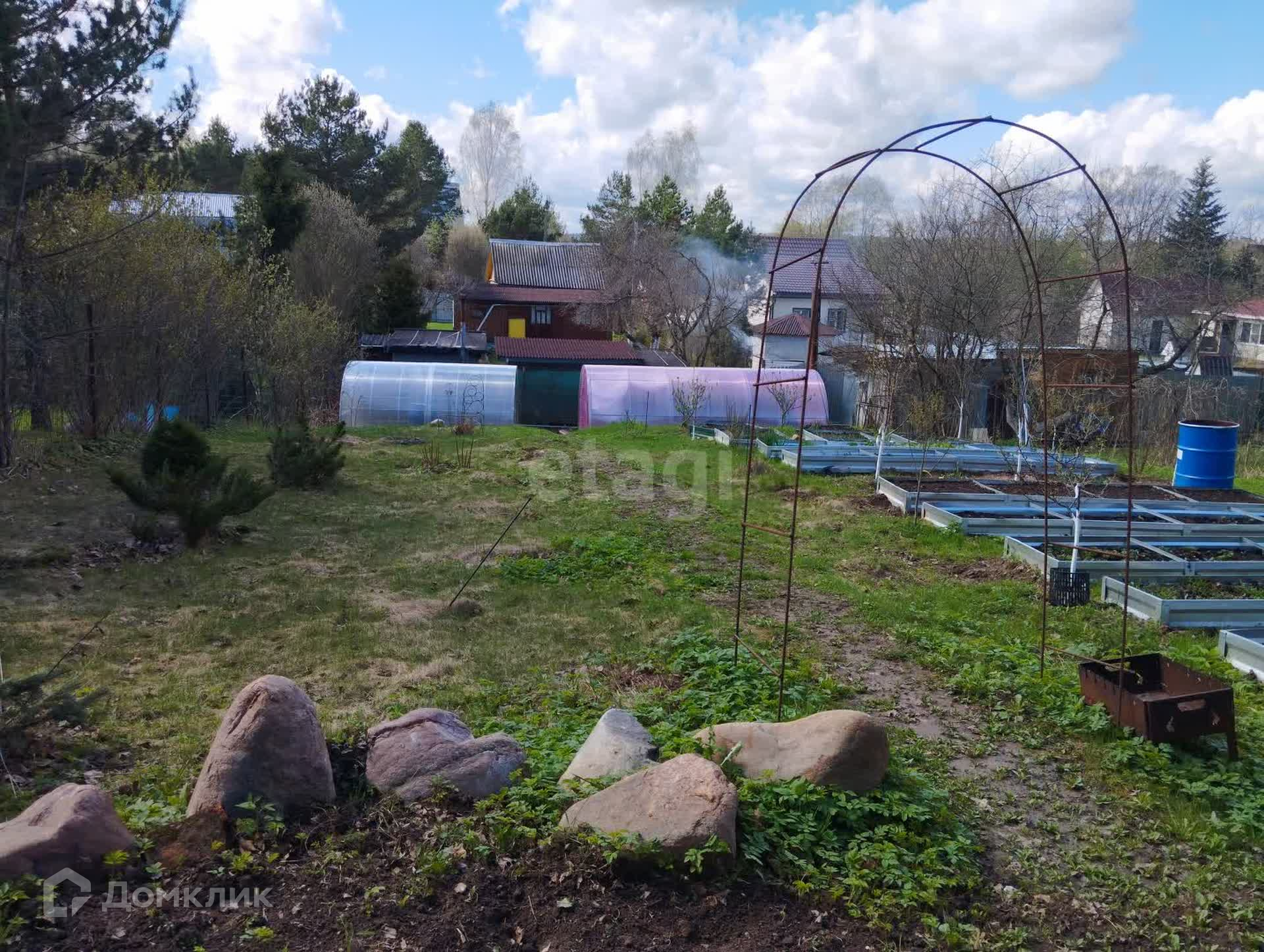 Участок ухожен, насажены плодовые деревья и кустарники, газон. Имеется теплица 3×6 и 3×4.