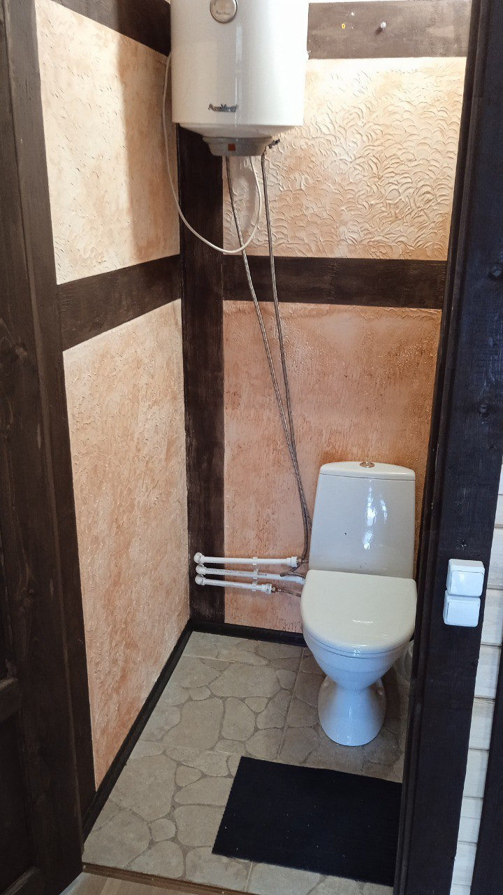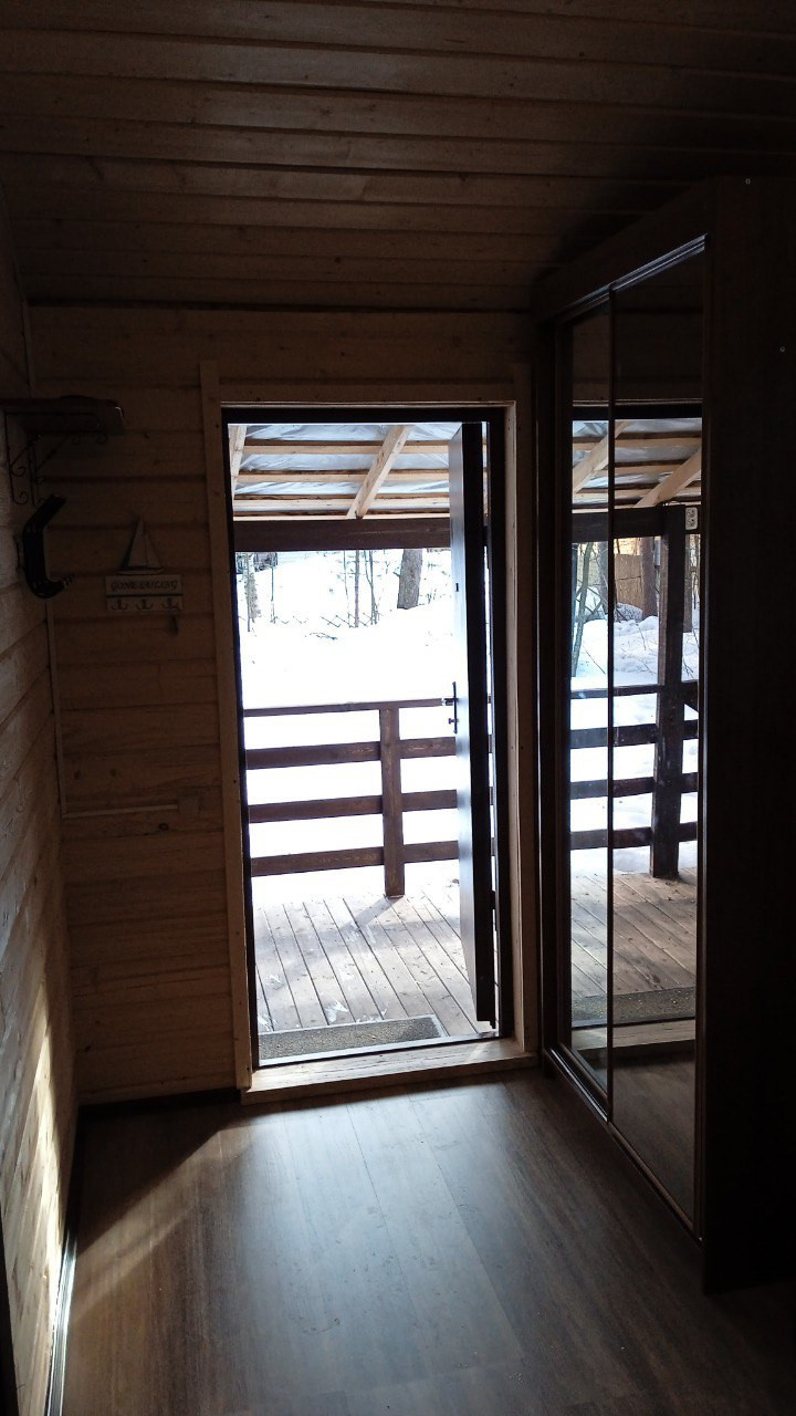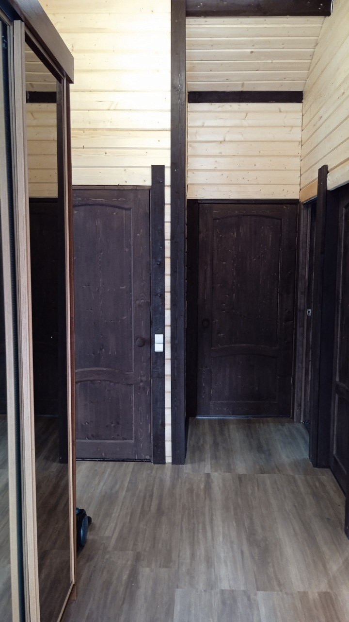 Дом построен из бруса, в 2021 году. Зарегистрирован в Росреестре. Площадь дома 61,9 м2, кухня гостиная 24 м 2, две спальные комнаты по 9 м2 каждая. Санузел раздельный. Так же, у дома есть терраса.