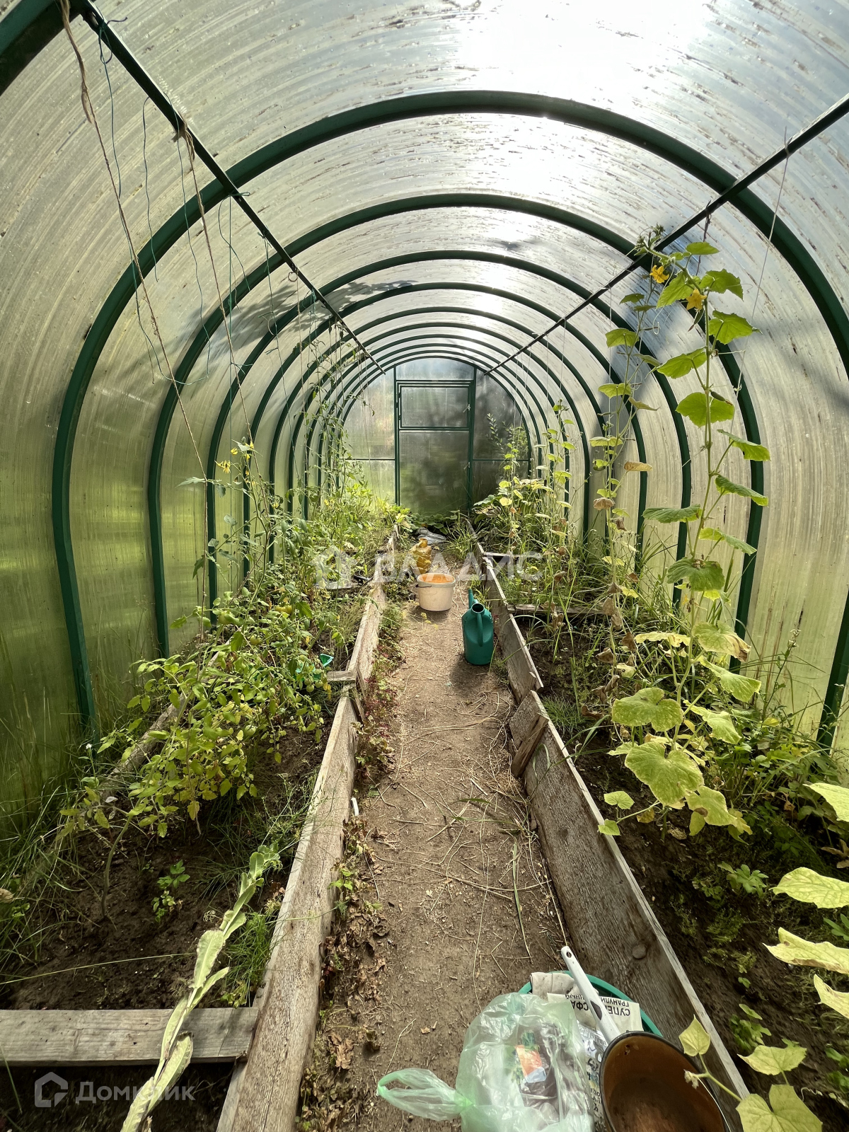 На участке имеется дровница, постройка для хранения Х/И и теплица. Дом расположен в глубине участка, перед домом много свободного места, есть заезд для А/С.