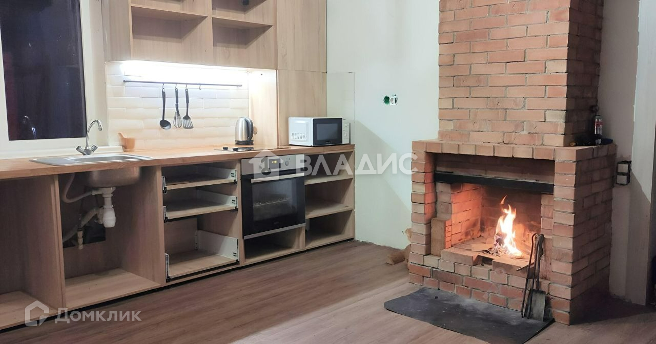 Первый этаж  большая гостинная-кухня с камином. Установлен каркас кухни  осталось только выбрать фасады на свой вкус, столешница  натуральный дуб. Большой совмещенный санузел. Спальня.