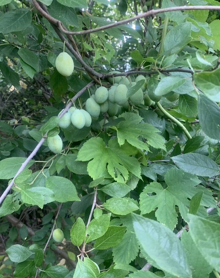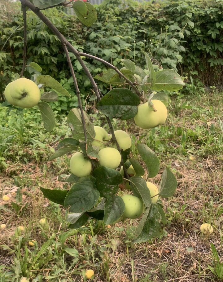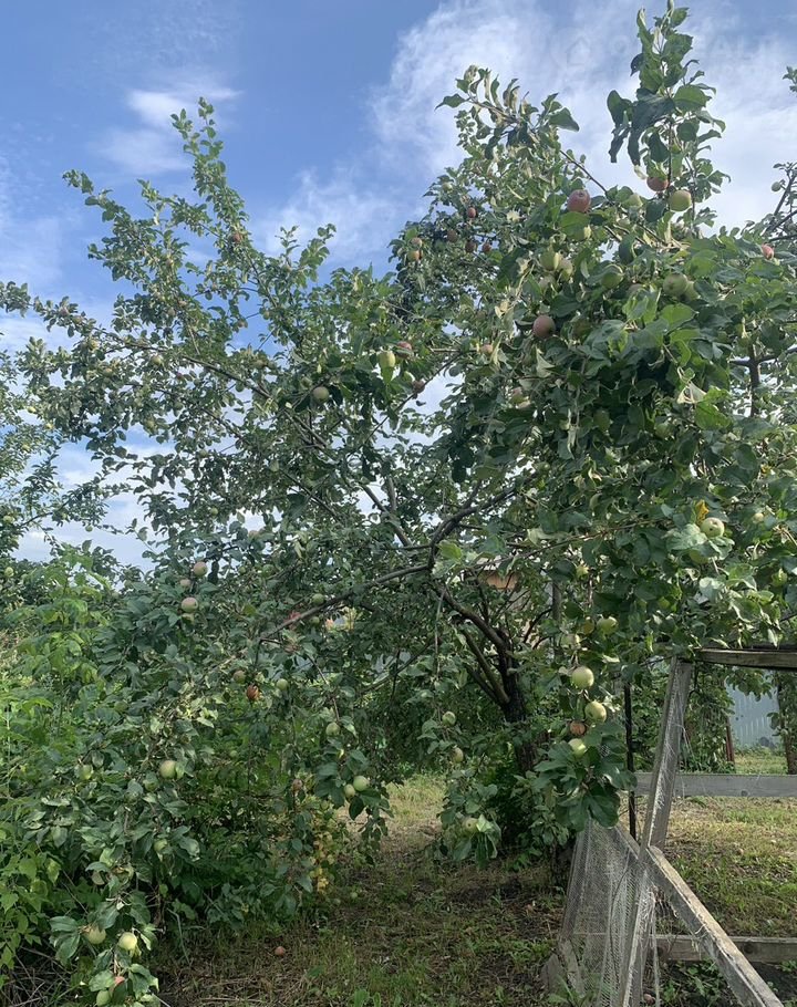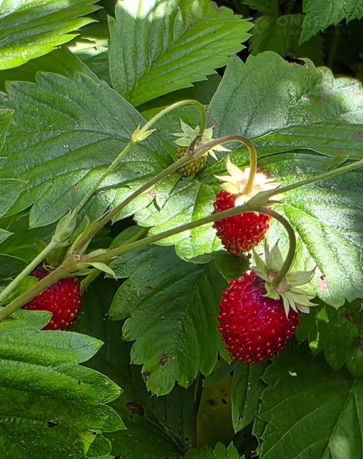На территории плодоносящие  яблони, сливы, смородина, вишня, ягоды, малина и т.д.