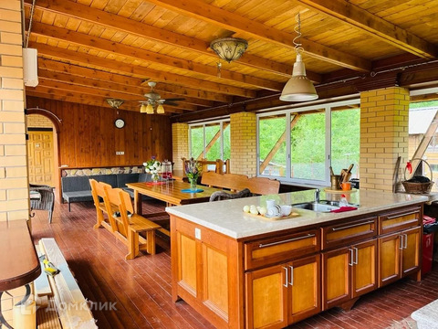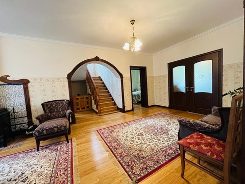 Продается дом 287 м2 с участком 30 соток. На участке, кроме дома, находится зона барбекю - 100 м2, гараж на 2 машины, домик для работника, баня, вольер для собак, курятник, помещение для инструмента. За участком находится сосновый лес. В доме 2 этажа плюс цокольный этаж. На первом этаже находится кухня 26 м2, гостинная 29 м2, 2 спальни, санузел. На 2-м этаже - холл, 4 спальни, кабинет, санузел. На цокольном этаже котельная, сауна, санузел, кладовая, свободное помещение 34 м2. В доме вода, электричество, канализация - септик, подведен газ. Вода чистая, артезианская - 2 скважины. Стены дома сделаны: 2 слоя кирпича по 30 см, между ними утеплитель (керамзит) - 30 см - всего у стен толщина 90 см. На первом и 2-м этаже паркет из бамбука, на цокольном этаже паркет из лиственницы. На кухне, в коридоре, в санузлах полы с подогревом. На участке посажены плодовые деревья: груши, яблони, слива, калина. Посажены туи. В 15-ти минутах ходьбы огромное озеро с 3-мя пляжами, с лодочной станцией. До города Фрязино со всей инфраструктурой - школами, детсадами, больницей, поликлиникой. торговыми центрами. магазинами - 5 минут езды на машине. До ж\д станции 5 минут на машине, до автостанции 10 минут на машине, до Москвы - 25 км, 1 час на электричке или 45 минут на маршрутном такси.