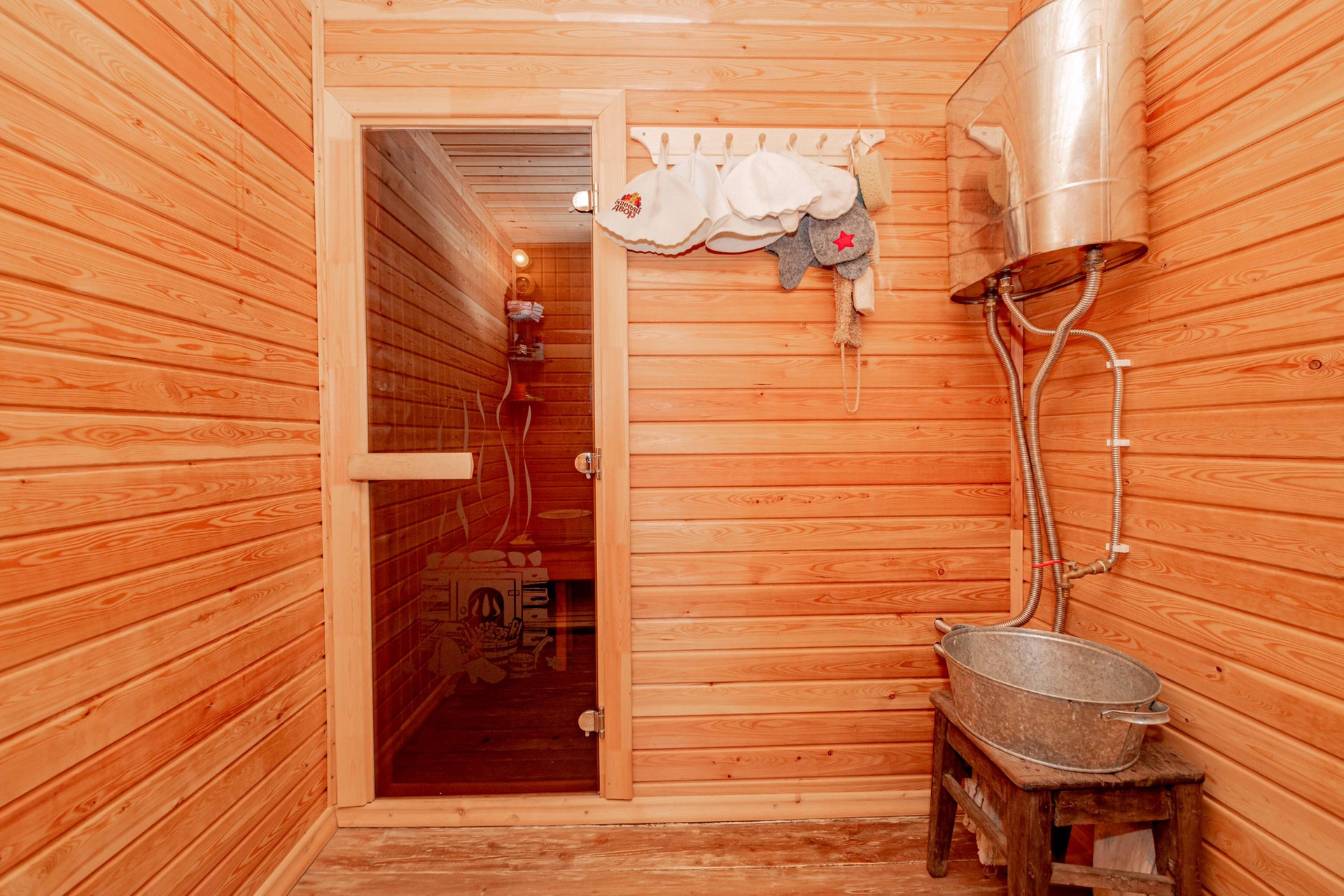 - баня из натурального дерева с мебелью ручной работы (строение тоже официально оформлено)