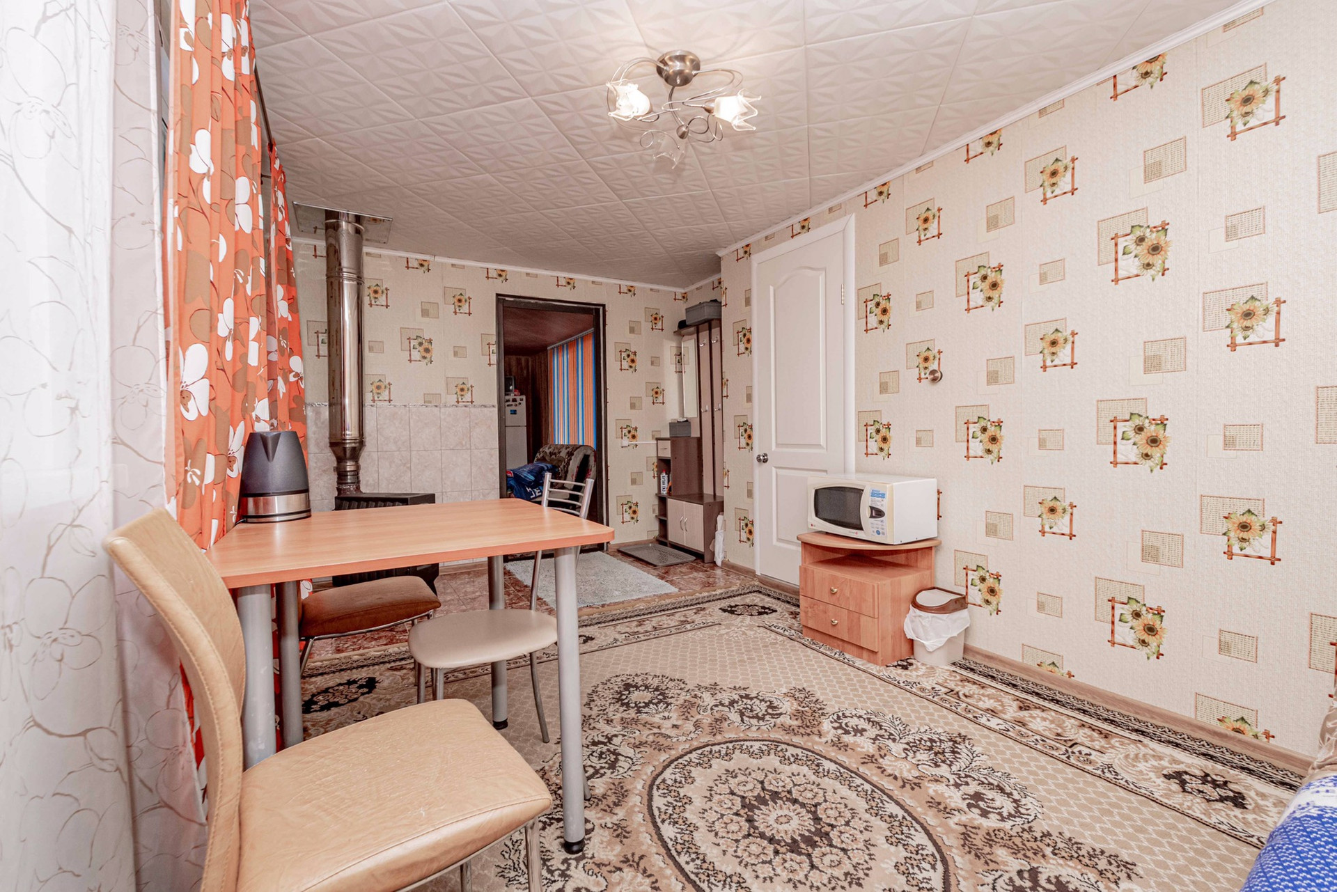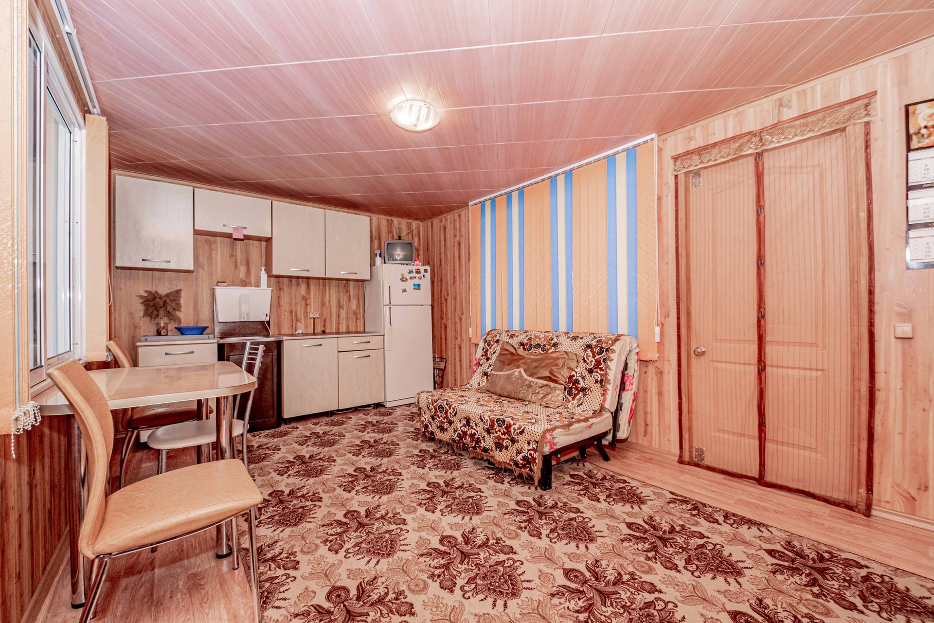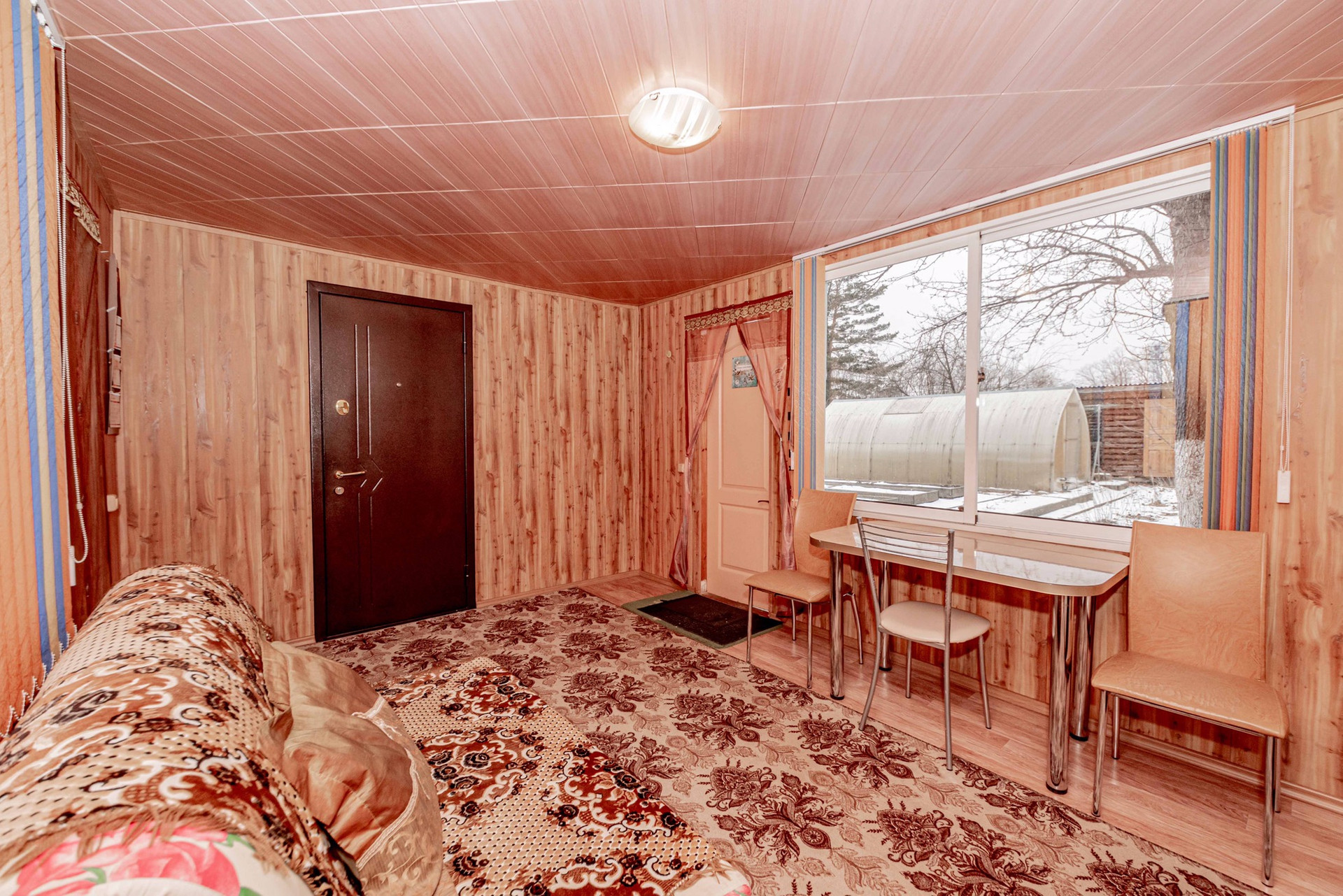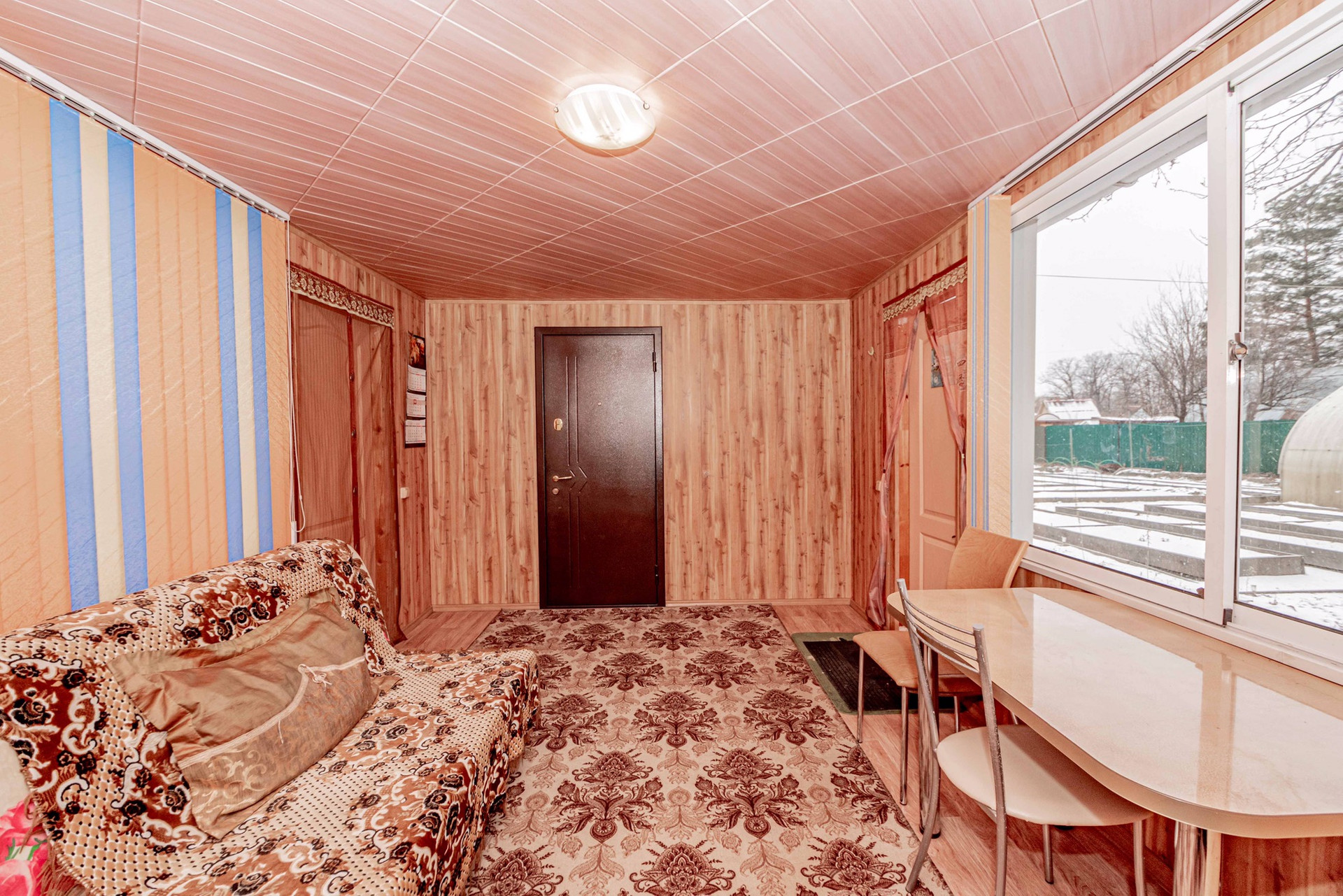 - двухэтажный 3-х комнатный утеплённый домик с чугунной печкой и летней кухней ( около 60 кВ м). 3 дивана, шкаф, вешала, 2 стола со стульями, кухонный гарнитур с умывальником ( с функцией подогрева воды до 60град), холодильник, микроволновка, чайник. Дом оформлен, как жилой, можно оформить прописку.