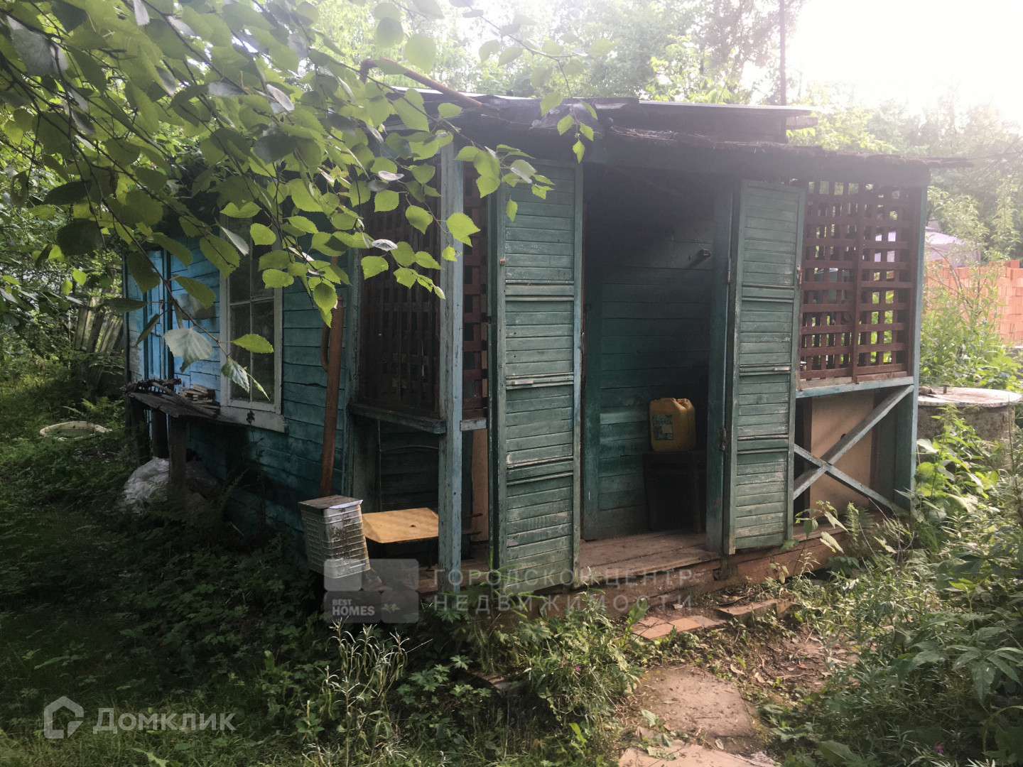 Участок 7,9 сотки утопает в зелени, высокие плодовые и лесные деревья, кустарники.