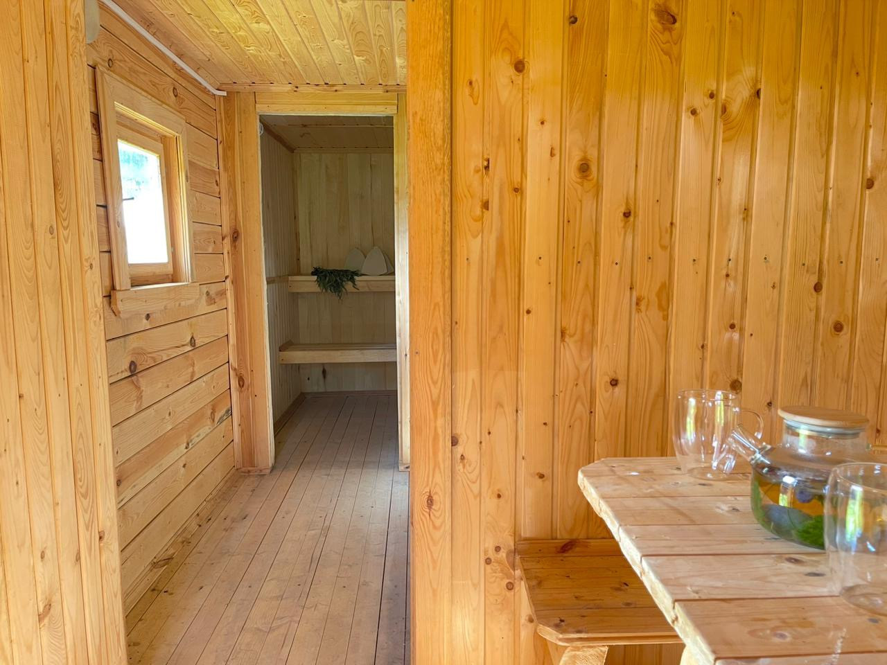 На участке имеется баня, где можно отдохнуть от городской суеты и выпить ароматного травяного чая.