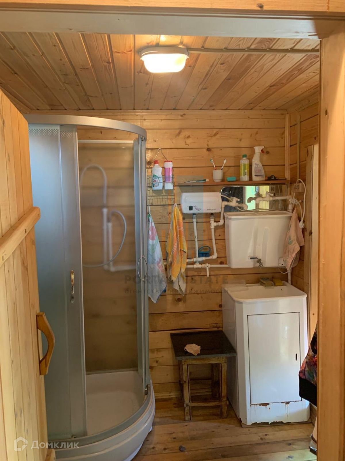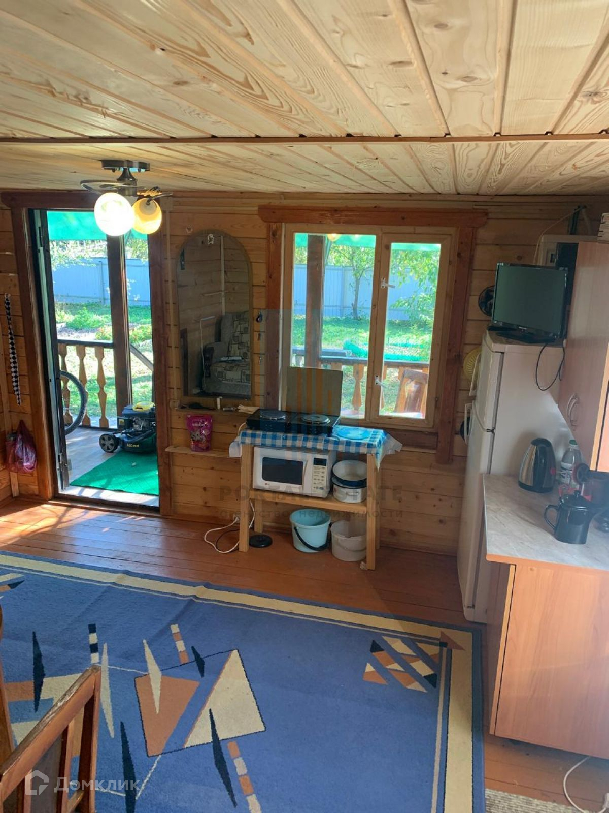 Тип строения - брус профилированный, фундамент - столбовой, крыша - ондулин, окна - деревянные.