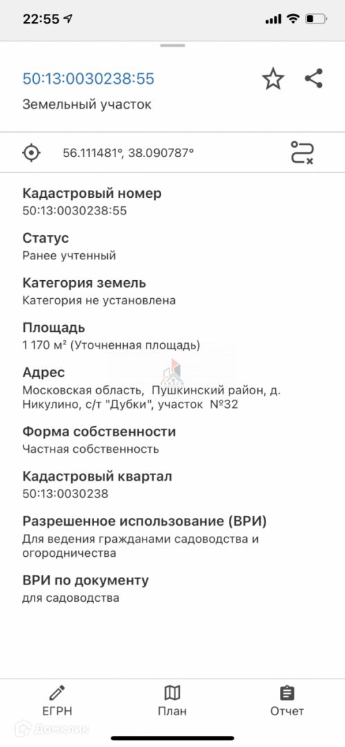 Кадастровый номер: 50:13:0030238:55