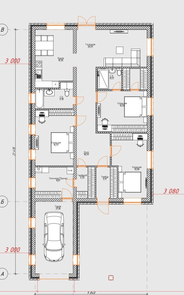 ✅ Дом построен из качественных материалов : керамзита блок и керпич.  Планировка дома: зал, кухня , три спальни , в одной спальне есть мастер спальня туалет и гардеробная, гостевой туалет и ванная, котельная, гараж, большой коридор.