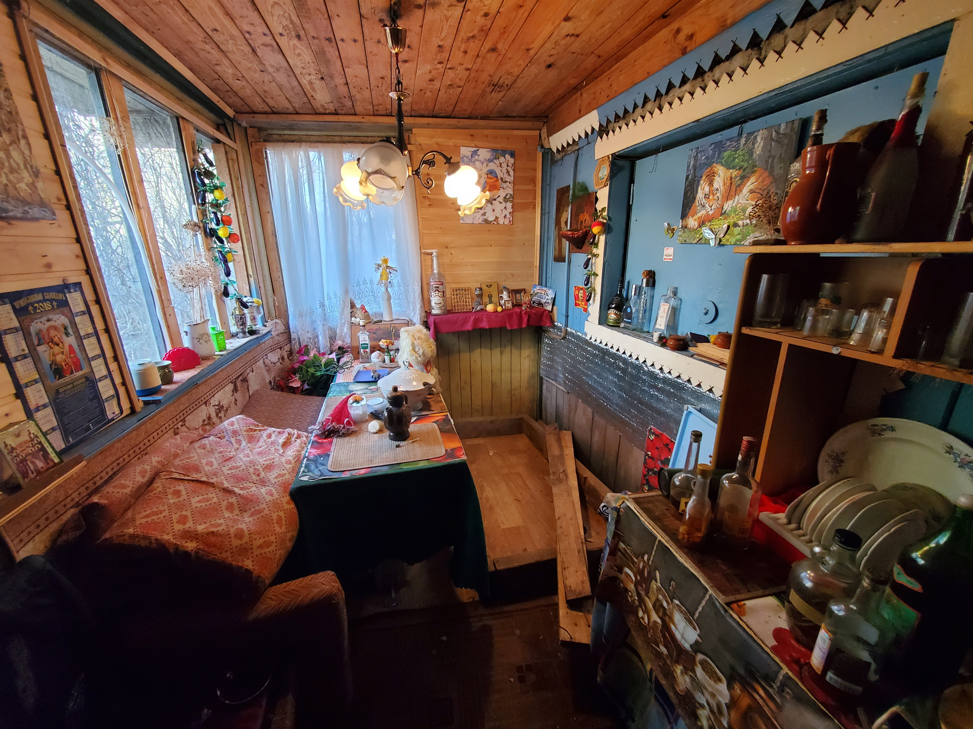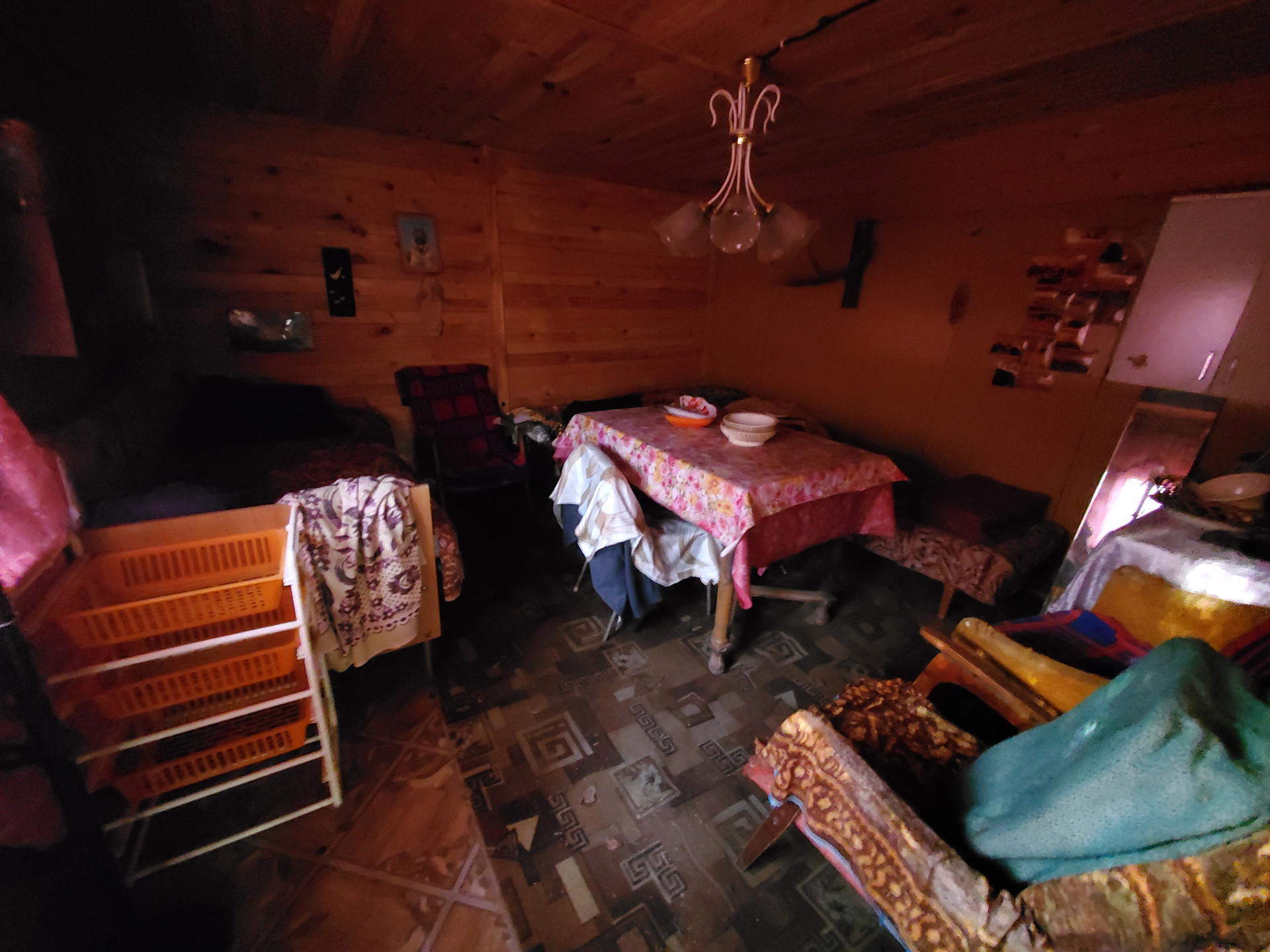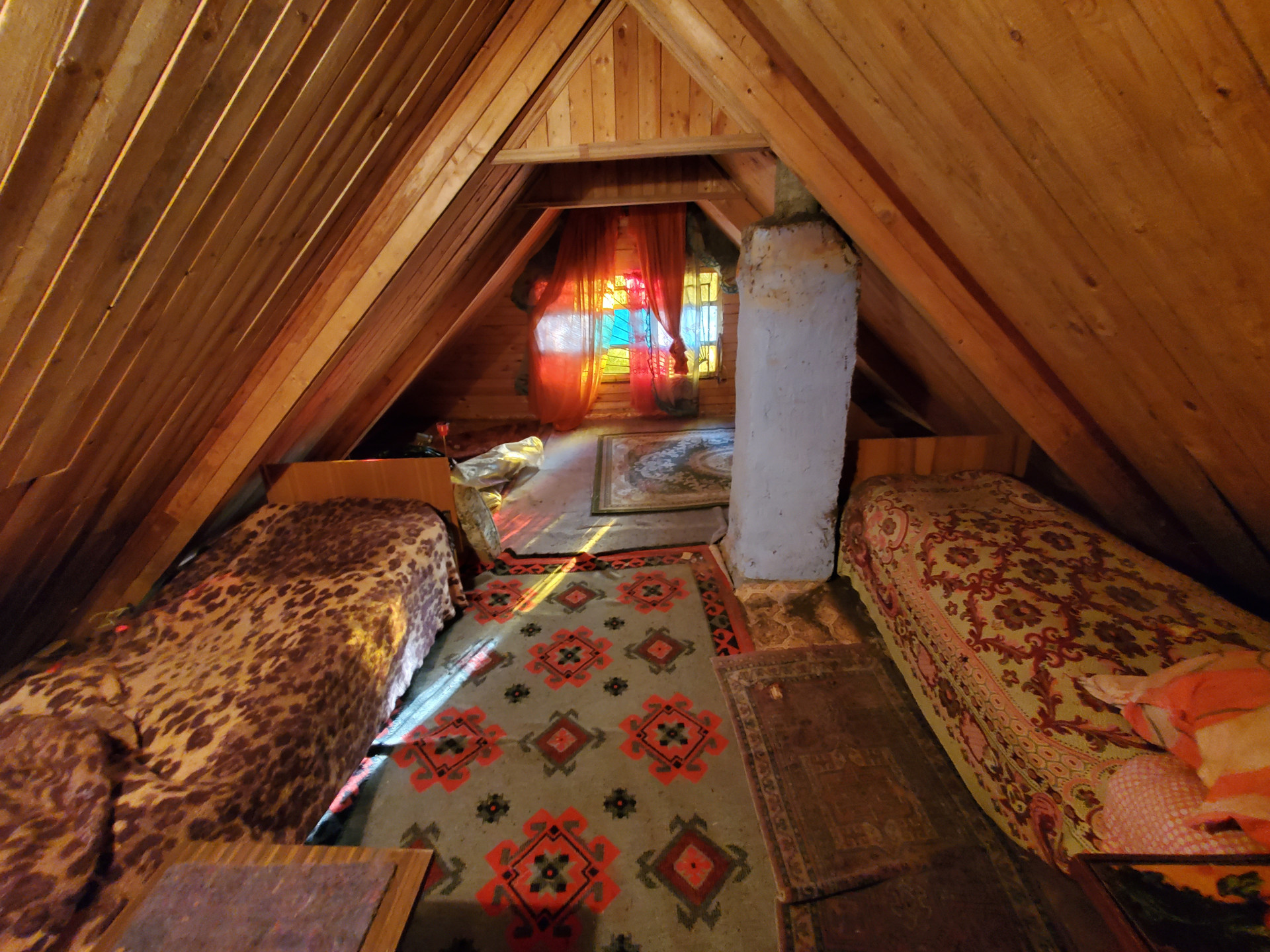 Дом площадью 50 кв.м построен из бетона и дерева, есть печь, газ - баллонный, вода (скважина) - заведена в дом. В доме на 1 этаже - кухня, и гостиная комната, 2 этаж - спальня и терраса с 2 мя кроватями для здорового сна. Тихие интеллигентные соседи.