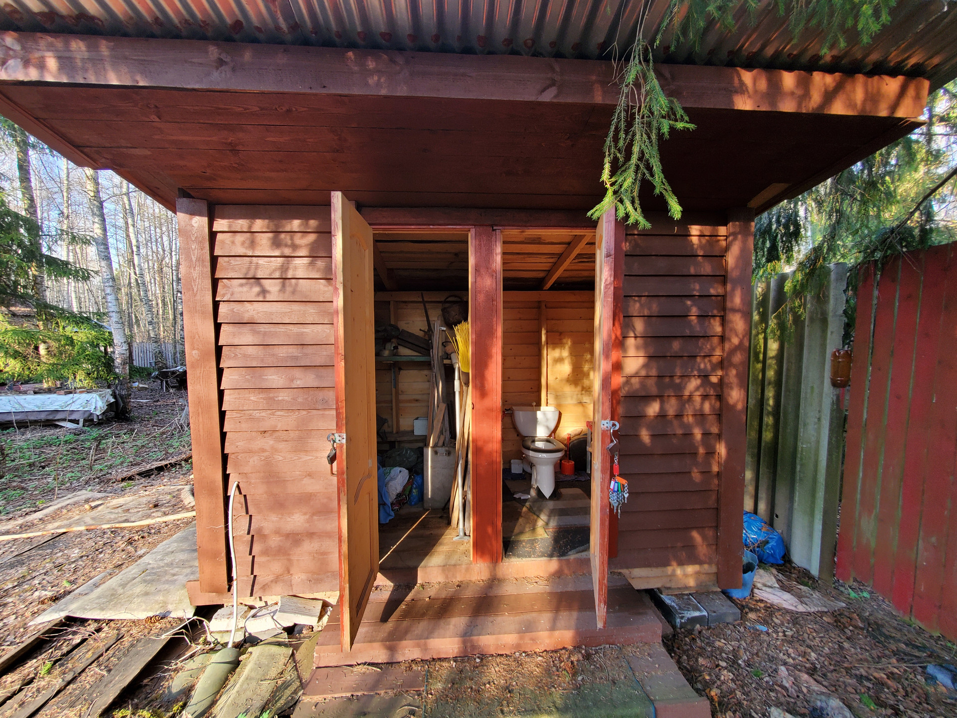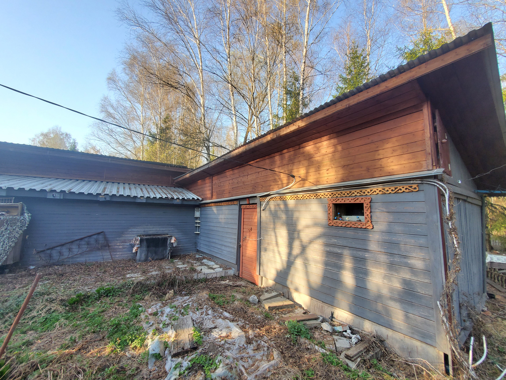 На участке – гараж, беседка, дровница, баня, гостевой домик, туалет, парниковая теплица, хозблок.