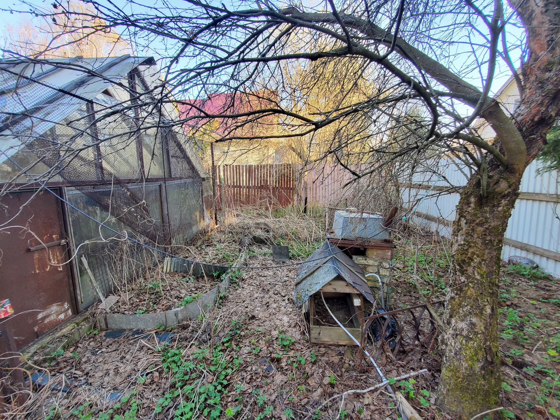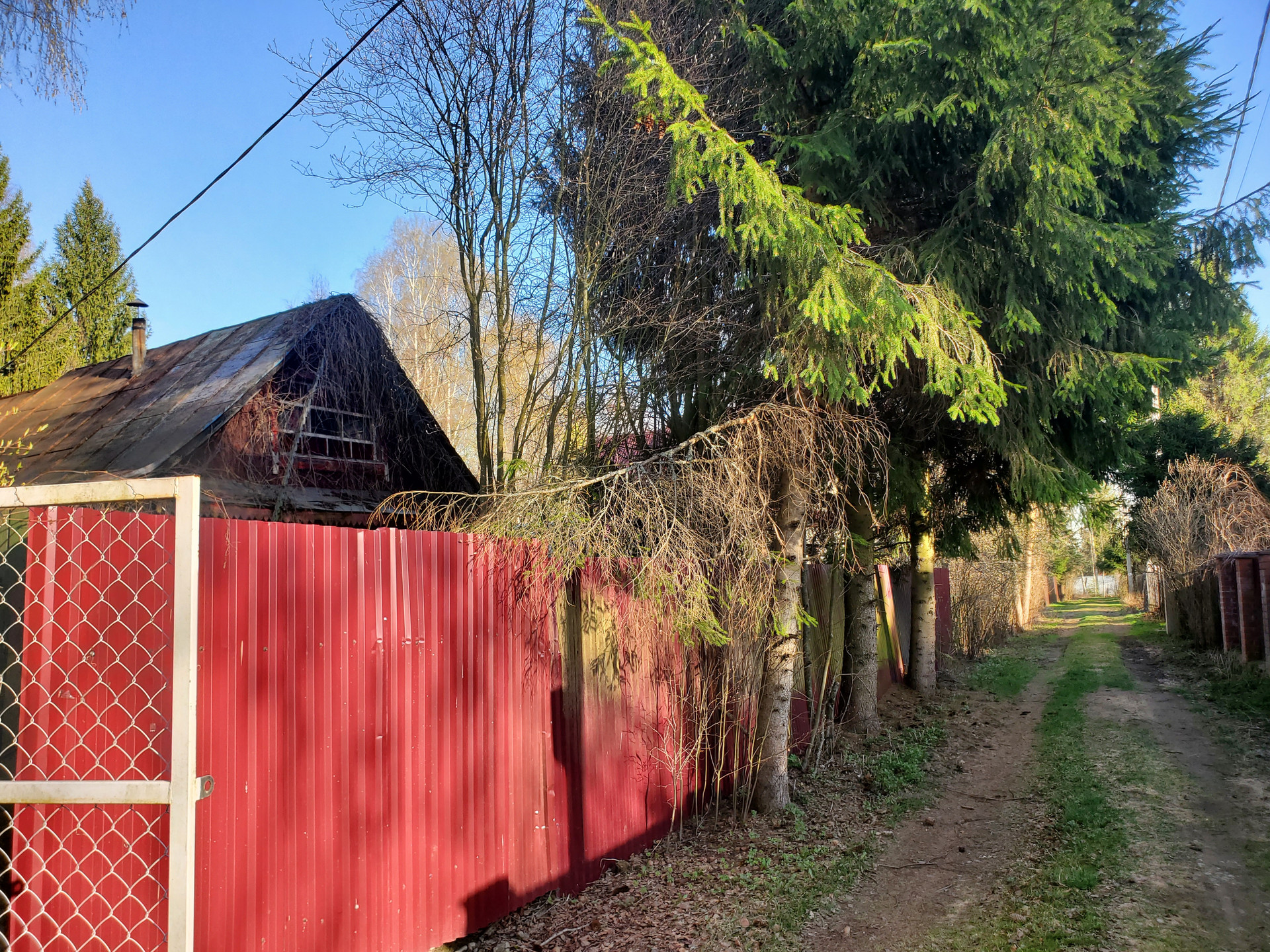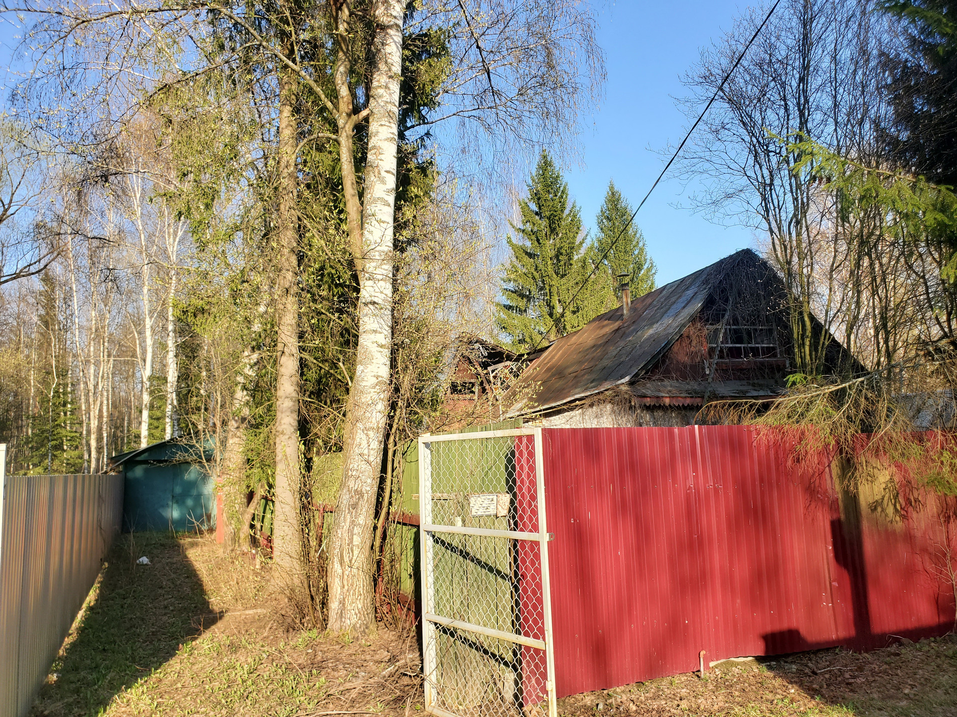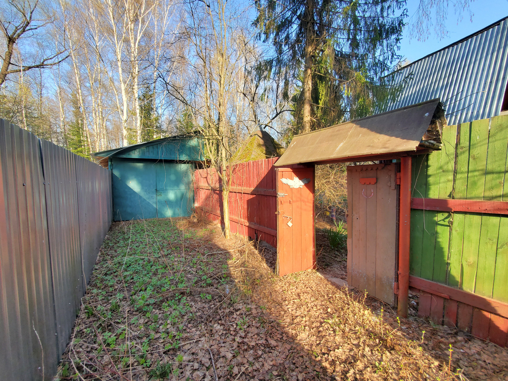 Участок с металлическим забором с заездом под машину – два въезда.