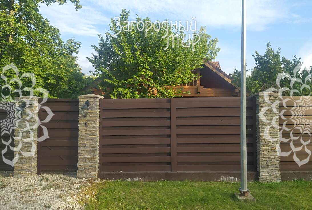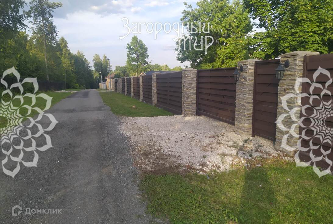 Участок 12 сот., огорожен забором из металлопрофиля по трем сторонам и деревянным забором на красивых каменных столбах по фасаду, есть откатные ворота, площадка для 3х авто. На участке много лесных деревьев, через дорогу к нему примыкает обширный лесной массив.