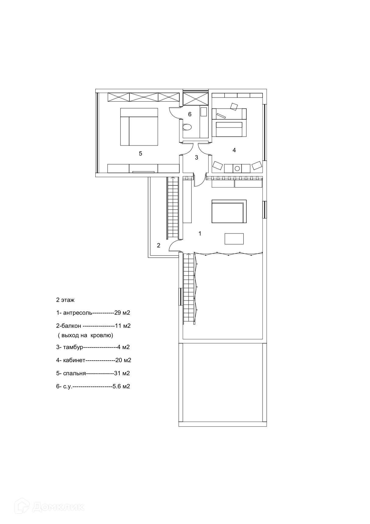 В доме 2 этажа полностью меблированы, эксплуатируемая кровля, большие террасы.