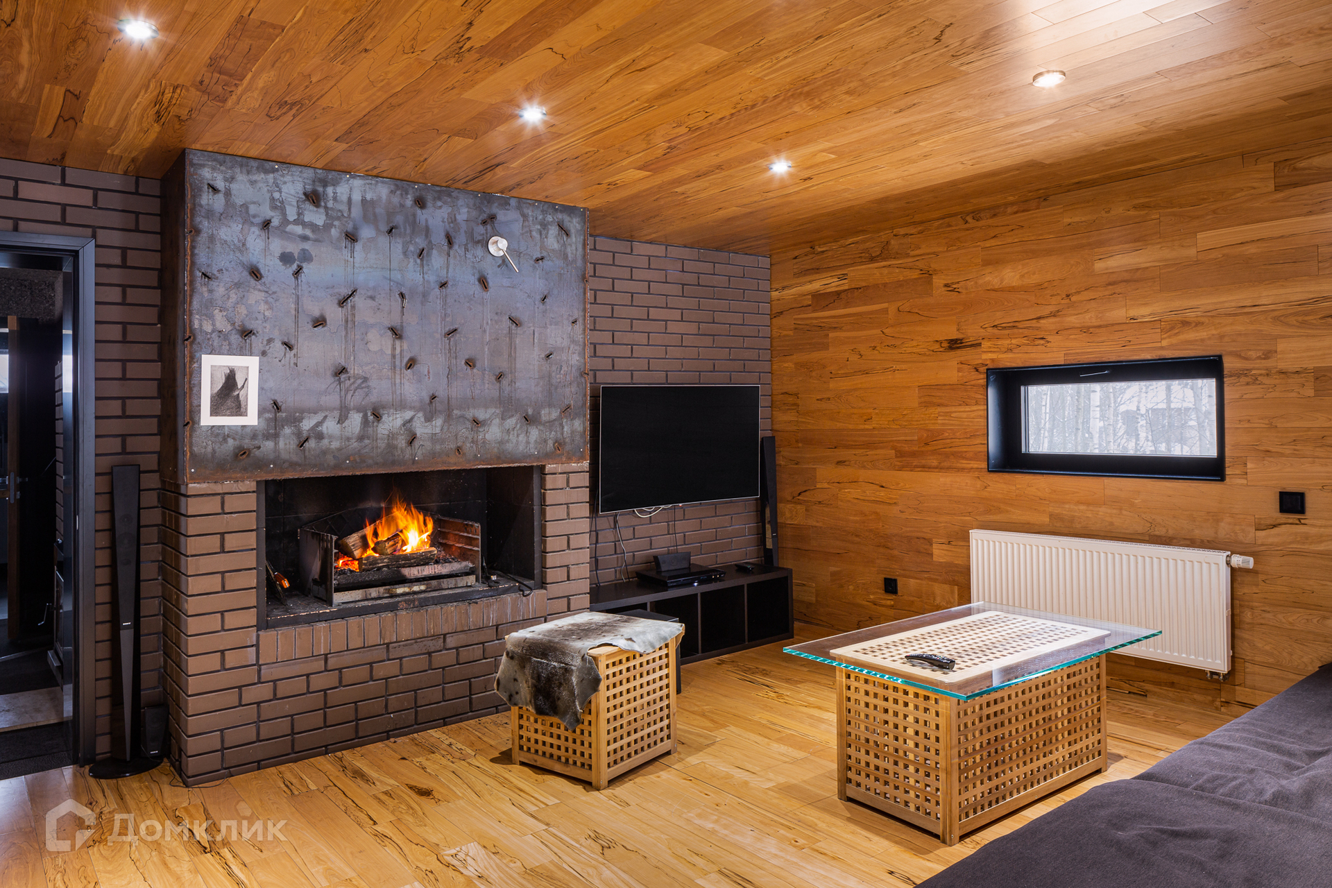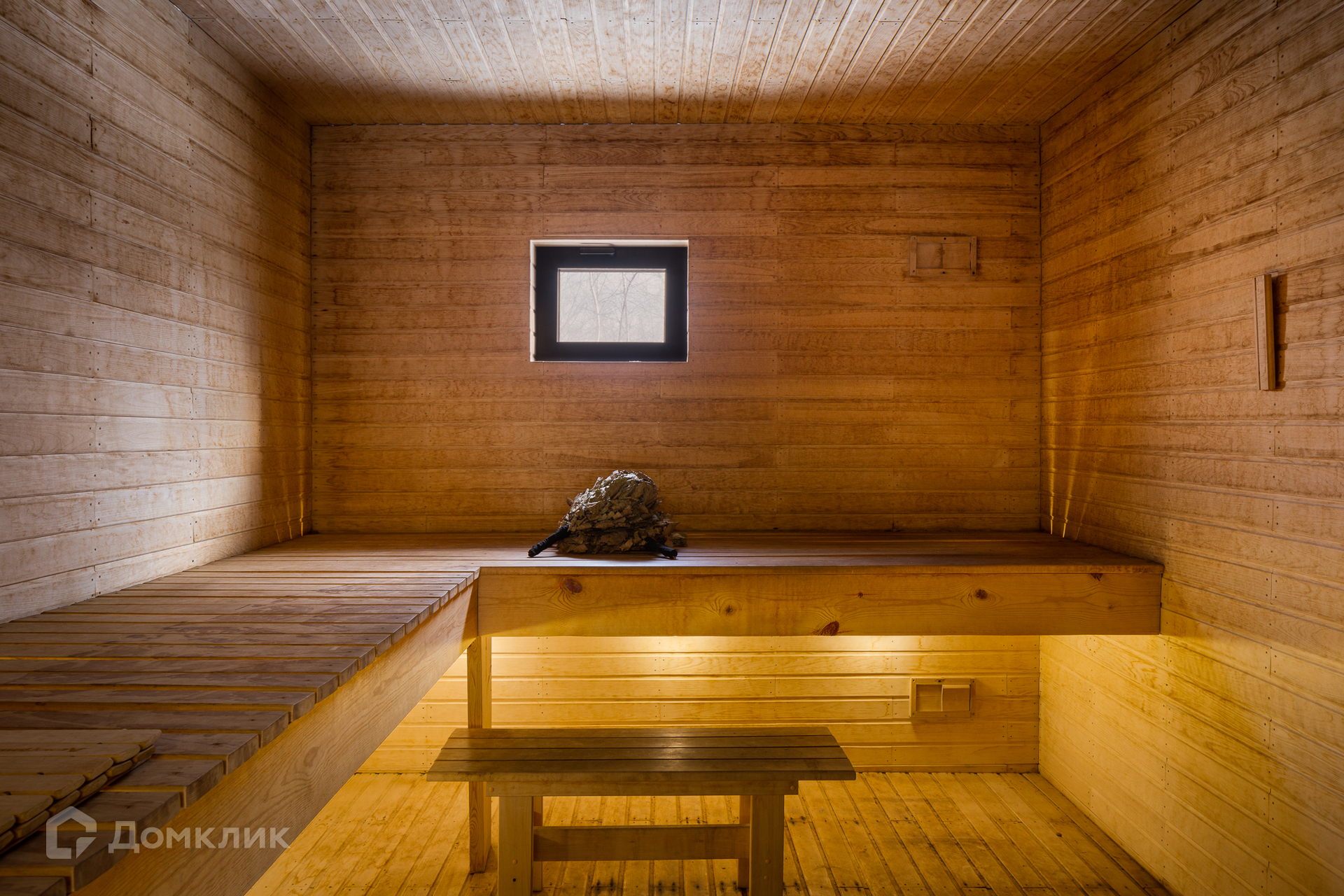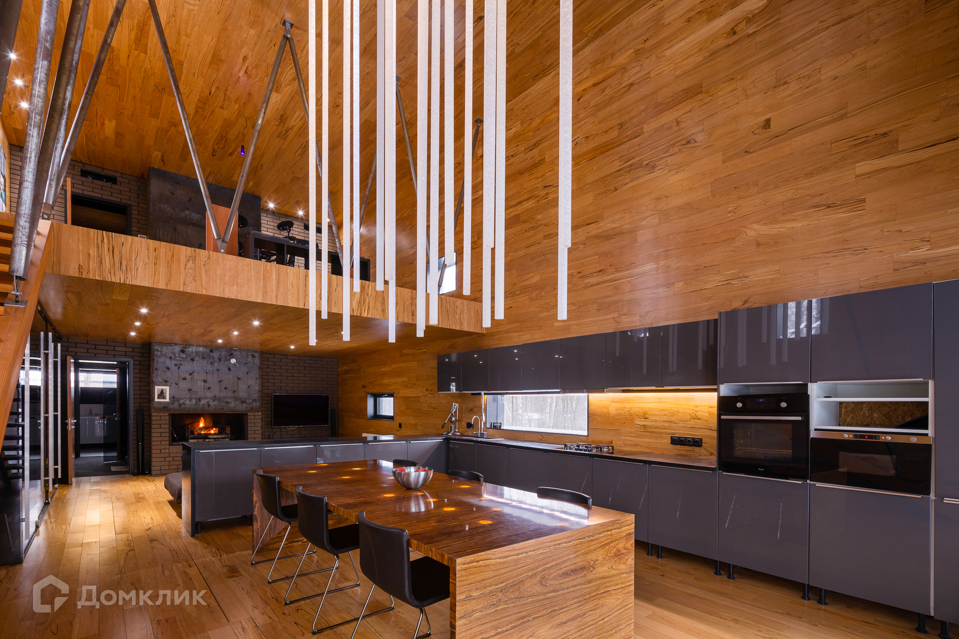 На 1-м этаже: гостиная с настоящим камином, кухня, оборудованная всей необходимой мебелью и техникой, которая удовлетворит запросы самой взыскательной хозяйки, просторная сауна, санузел совмещенный. Прямо напротив сауны имеется выход на террасу с купелью.
