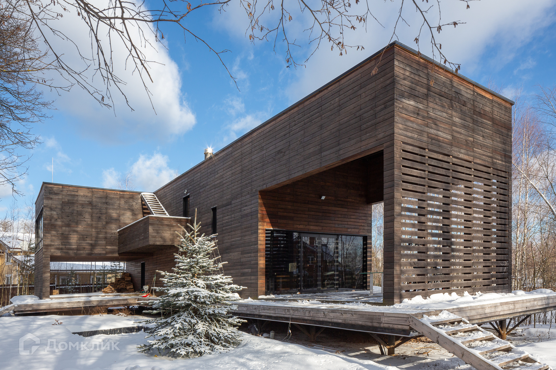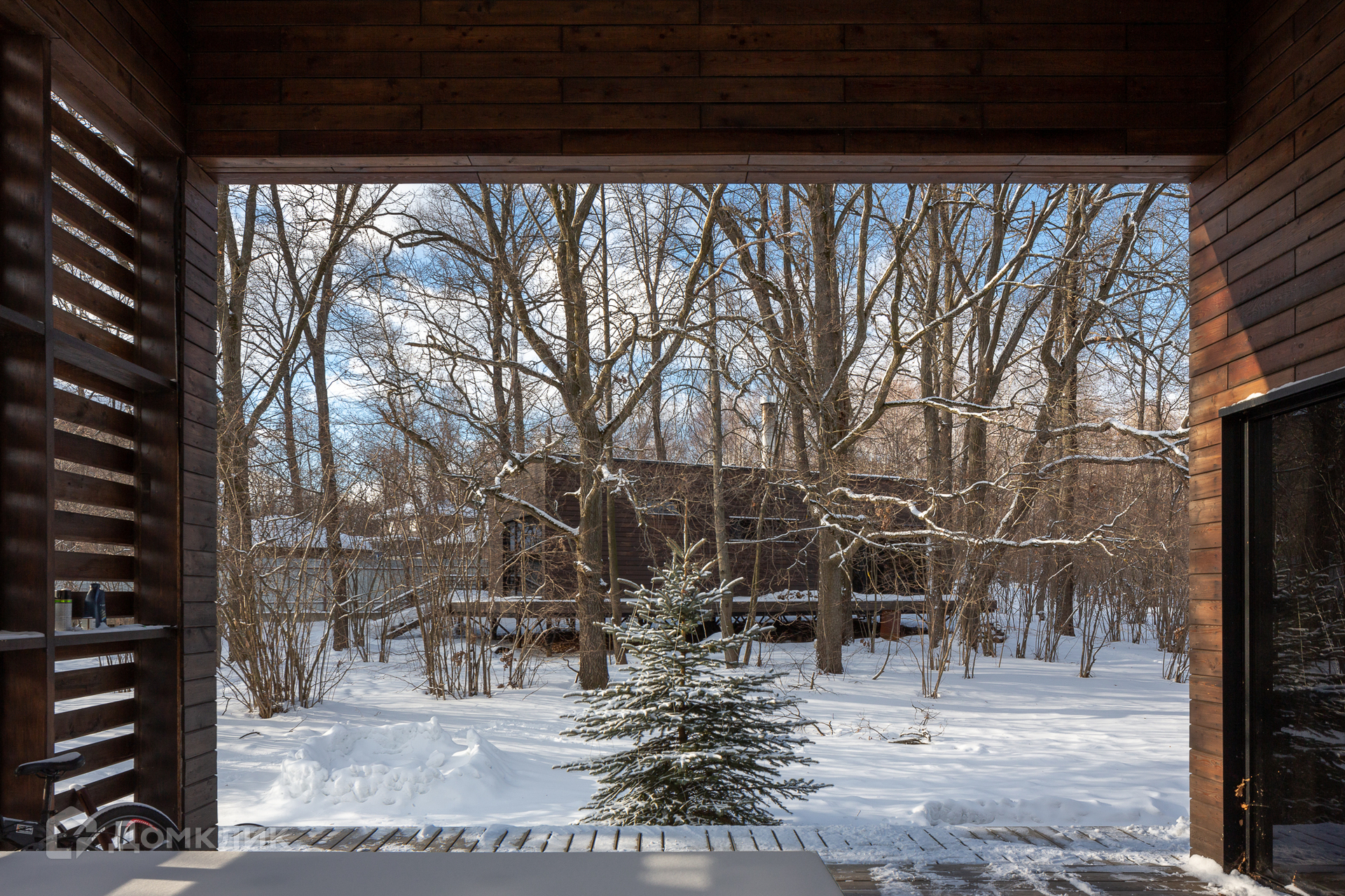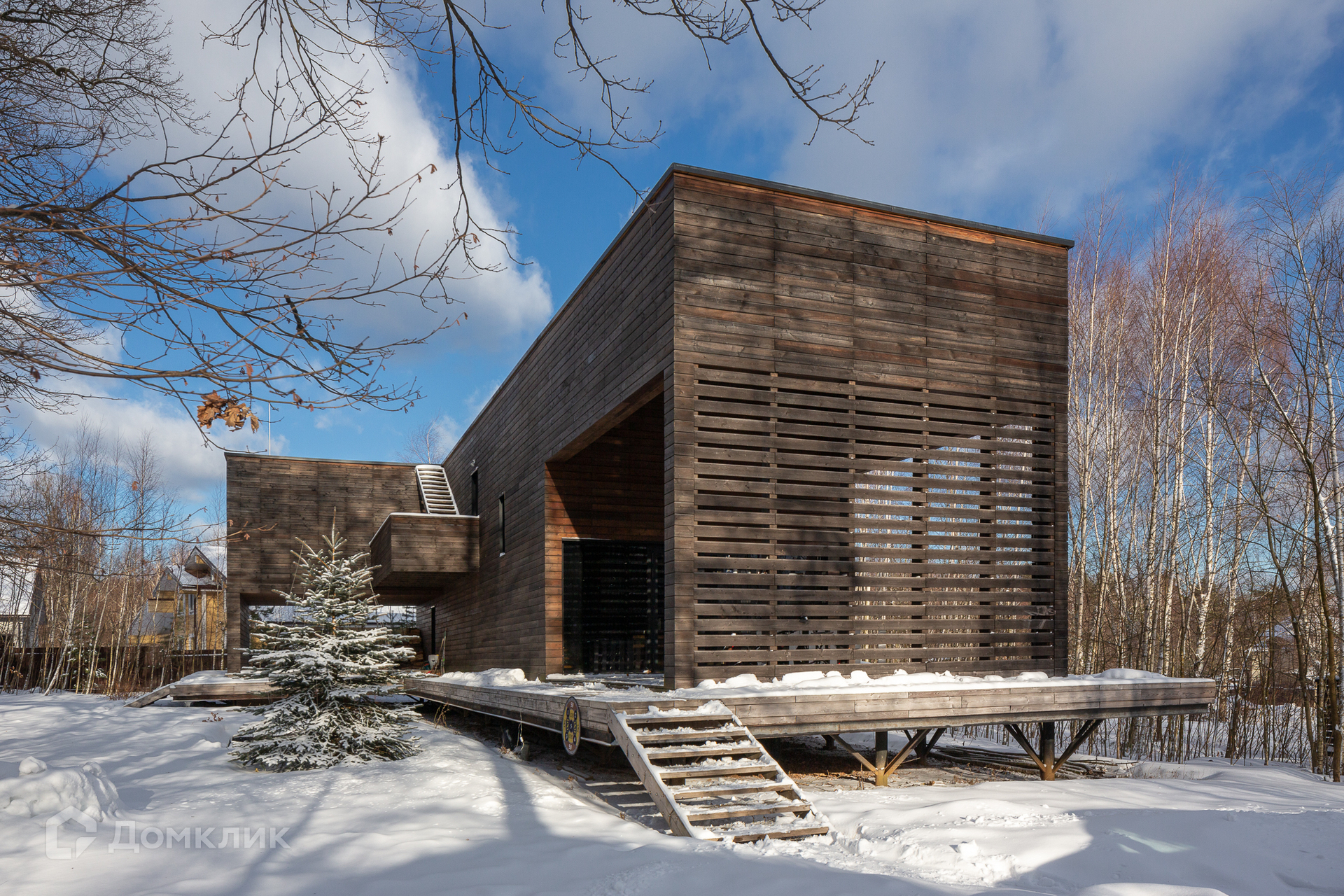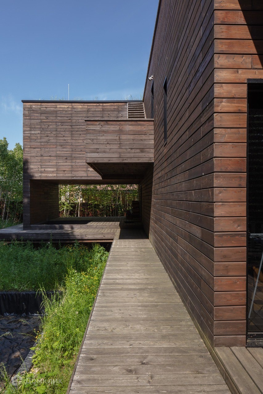 Кроме главного жилого дома площадью 266 кв.м будущие хозяева приобретают еще и второй гостевой дом площадью 73 кв.м (с двумя спальнями, камином, совмещенным санузлом) по адекватной цене. Дом архитектора находится в обычном поселке, нет высокого забора, лишь посаженные кусты и высокие деревья создают ощущение, что находишься в лесу. Все пространство воспринимается целиком, все постройки сливаются с окружающей природой и сосуществуют в гармонии, как будто выросли здесь сами.