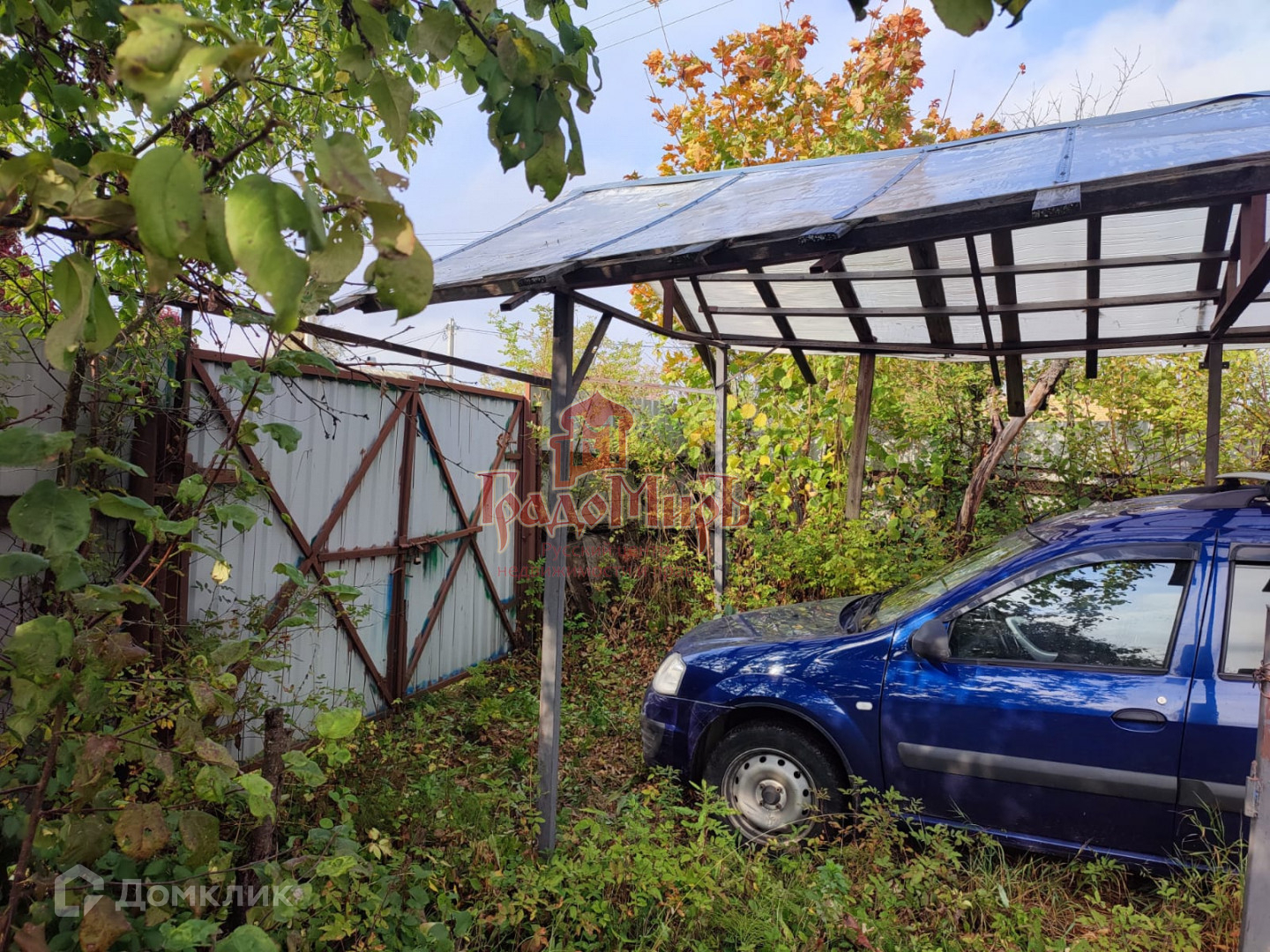 Кроме дома на участке расположены уличный туалет, место для автомобиля с установленным на нем металлическим навесом.  Есть сложенный, разобранный бревенчатый дом из которого можно построить баню.