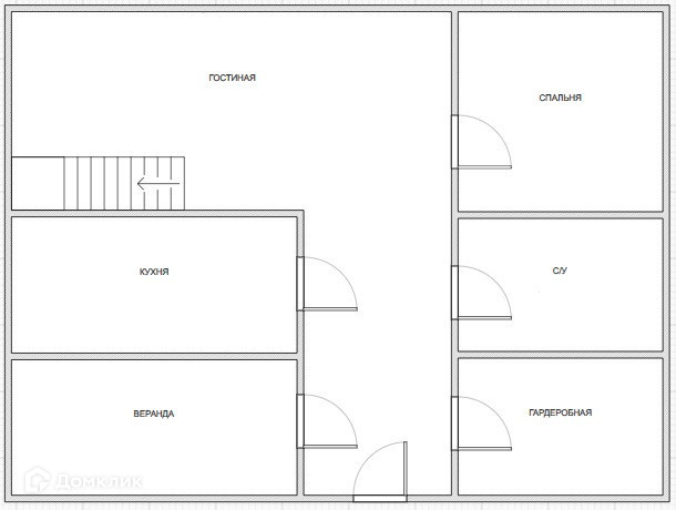 Планировка дома: Веранда, входная группа, зал-студия, две большие спальни, санузел.