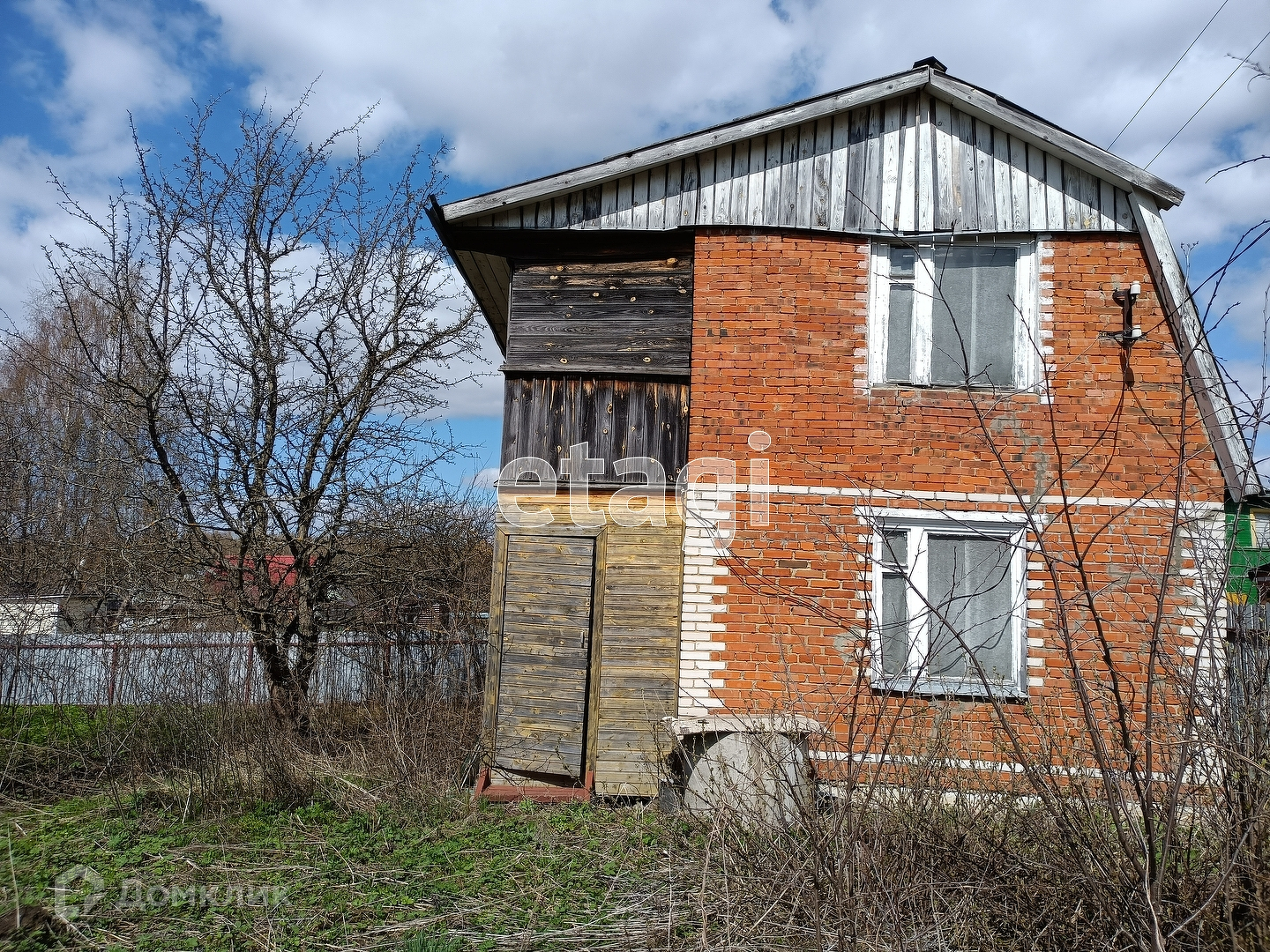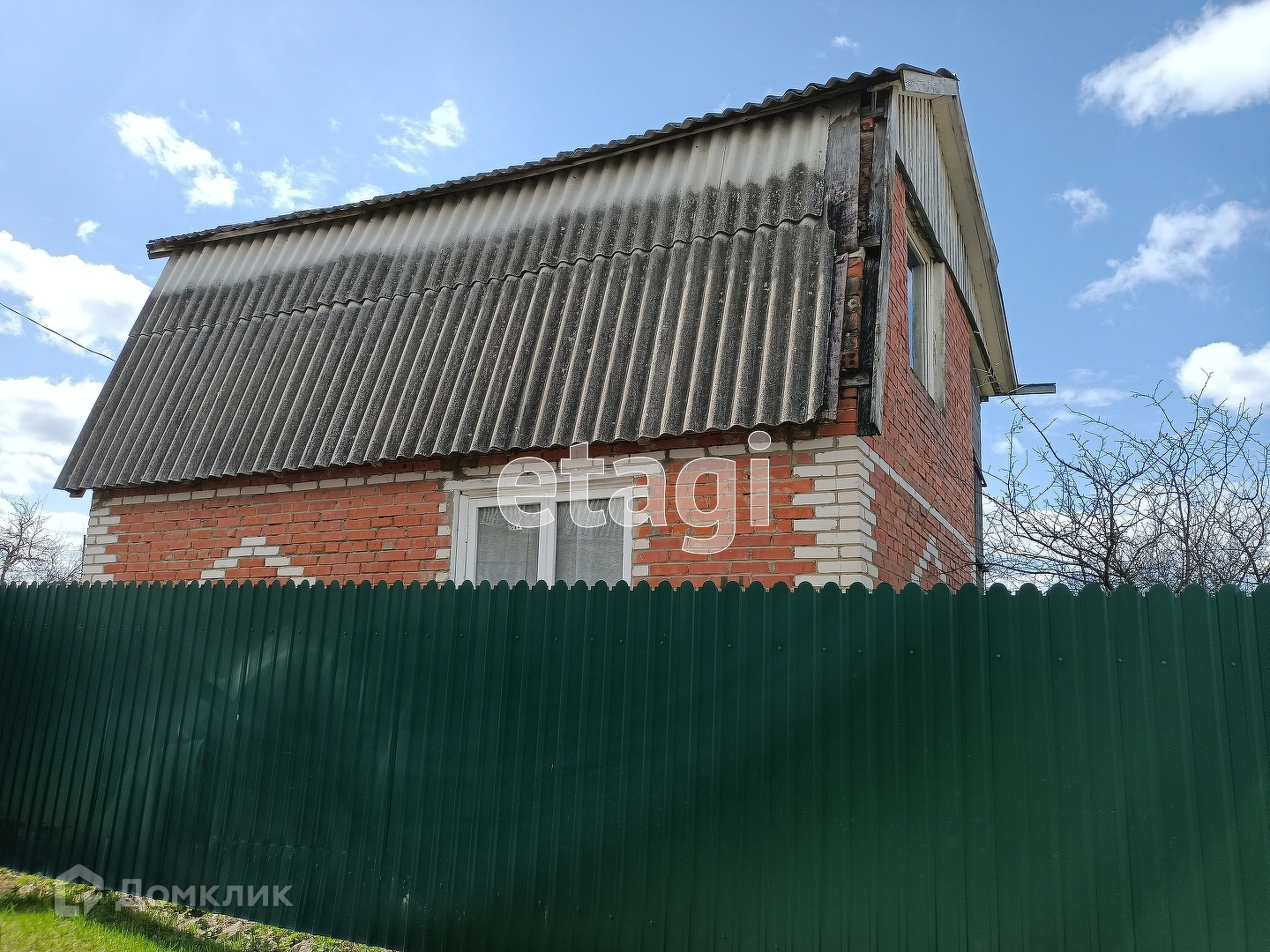 Дом 2-этажный, кирпичный, на ленточном фундаменте, общей площадью 48 кв.метров + пристройка 20 кв. метров. Дом зарегистрирован!!!  Внутренняя отделка комбинированная: 1 этаж - покраска стен и пола, потолок - деревянная вагонка. 2 этаж  - требуется косметика и замена оконных рам. Большая веранда также в два этажа, отделана деревом, на свайном фундаменте. Крыша покрыта железом.