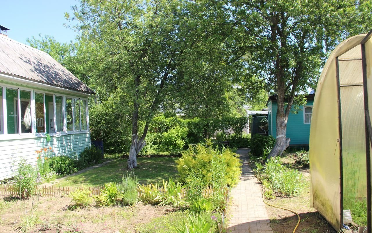 По участку сделаны дорожки из плитки, часть дорожек обустроена на бетонном основании. Много плодово-ягодных насаждений, есть теплица, декоративные кустарники и цветы.
