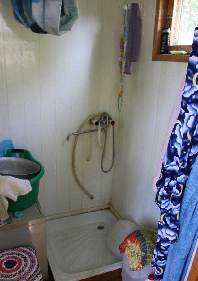 Также, есть eщe один теплый дом 18 кв.м, из бруса, также обшитый снаружи сайдингом, изнутри вагонкой. В нем расположена небольшая комната с кирпичной печью и небольшой кухней и отдельное помещение с душевой. Горячая вода подается от накопительного водонагревателя, слив оборудован в септик из 9 колец, выкопанный до песка.
