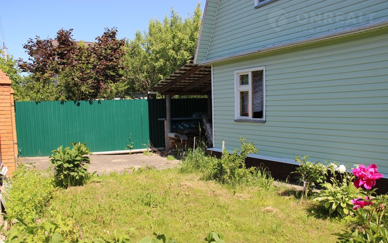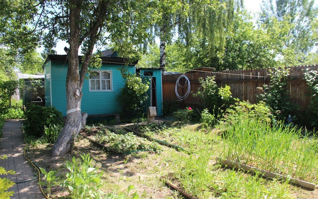 Участок 6 соток огорожен со всех сторон, по фасаду - профлист на бетонной ленте, столбы у ворот и калитки - кирпичные. Есть навес для машины.