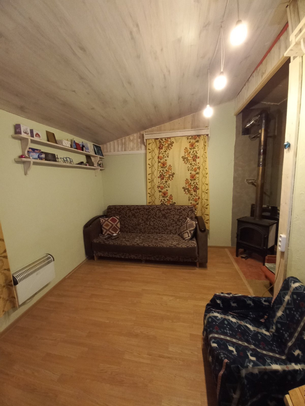 Отопление: электрические, конвекторы в каждой комнате. Запасной вариант - современная дровяная печь. Свой колодец с питьевой водой, вода в доме. Водонагреватель. Слив. Ввод воды в дом с греющими кабелями. Электричество круглый год.