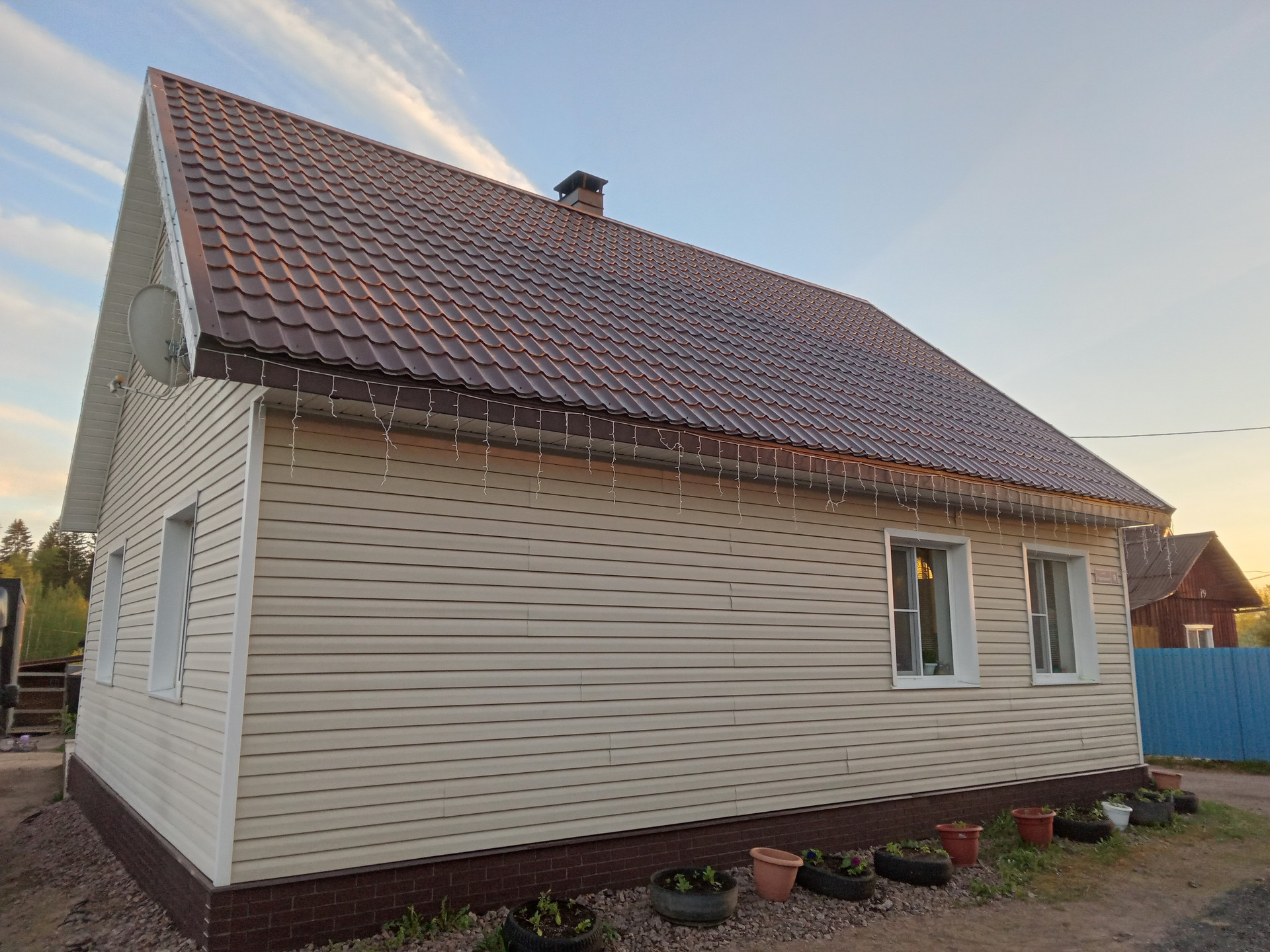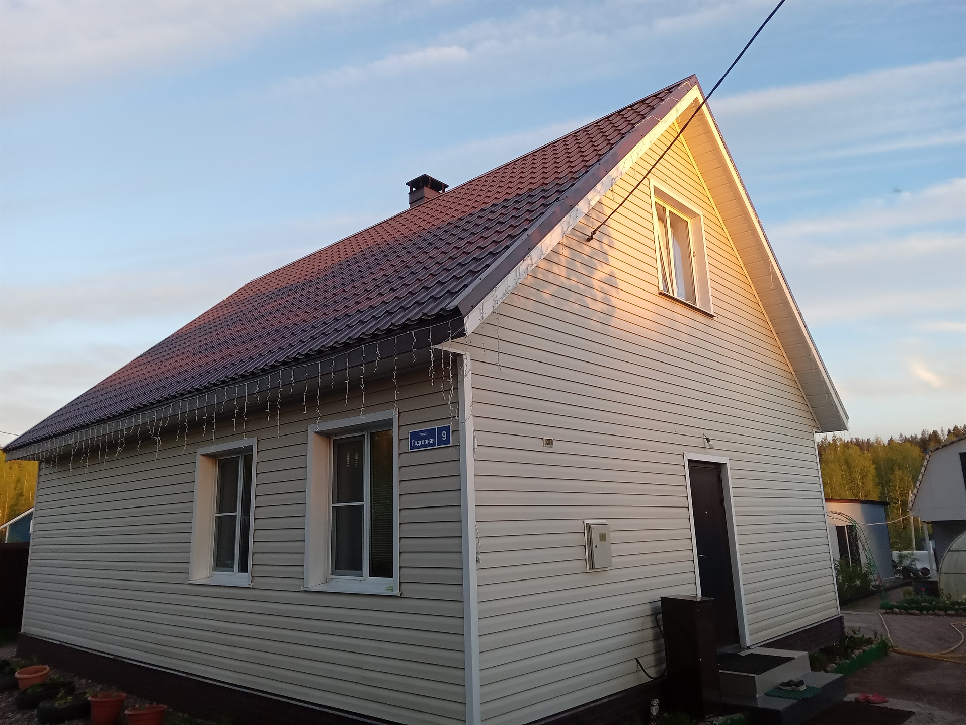 • Дом, для круглогодичного проживания, построен на монолитной плите, стены: газобетон, обшит сайдингом, крыша – финская металлочерепица, высота потолков 2,85 м., теплые полы в санузле и прихожей, при внутренней отделке дома использовались экологически чистые материалы.