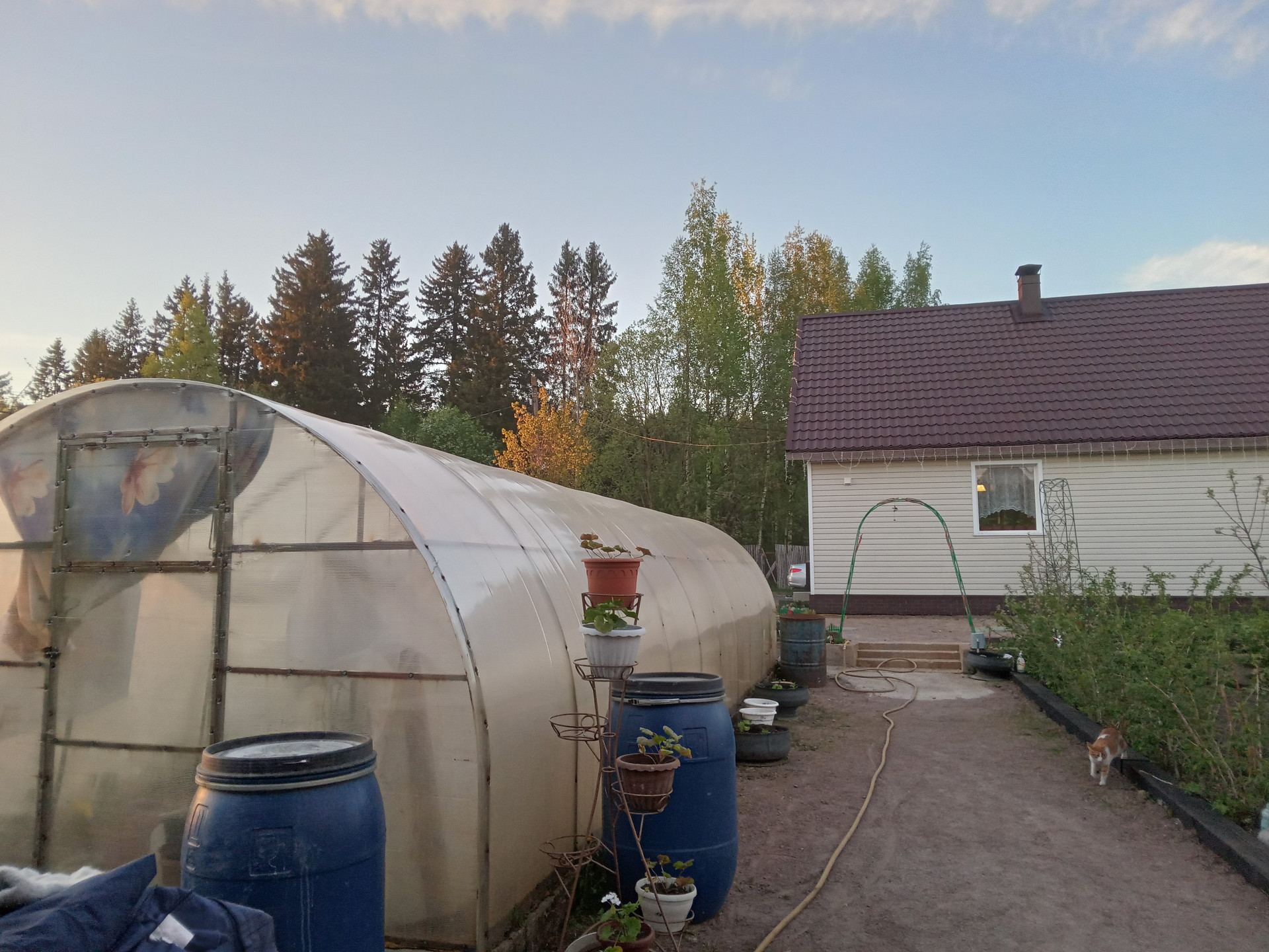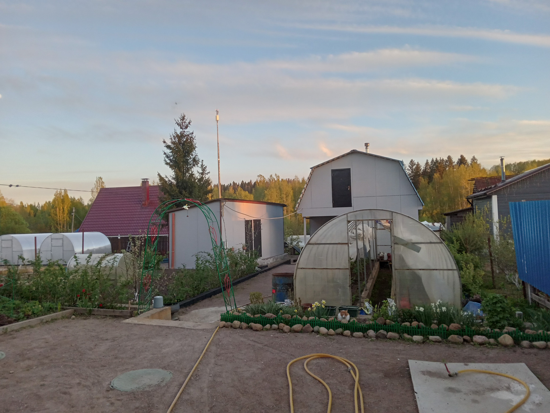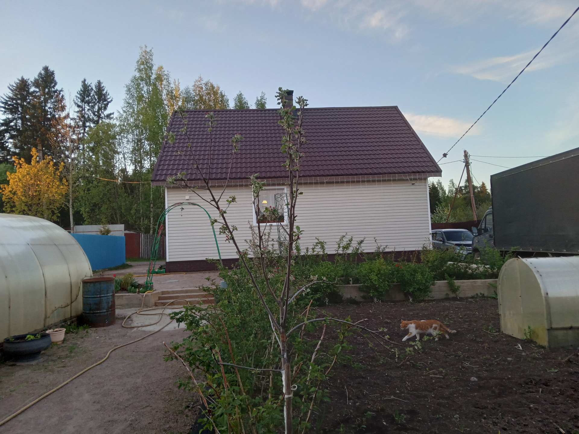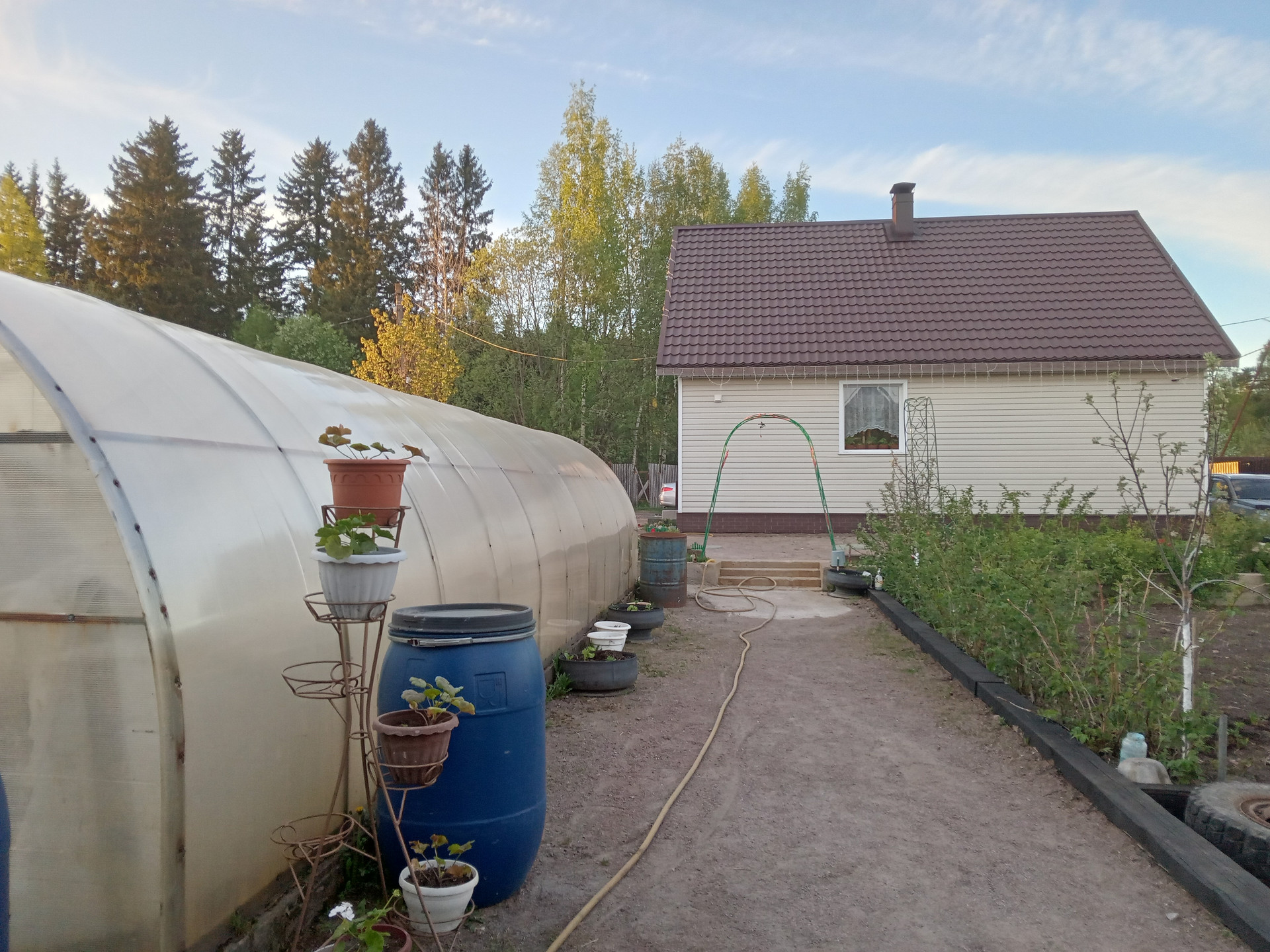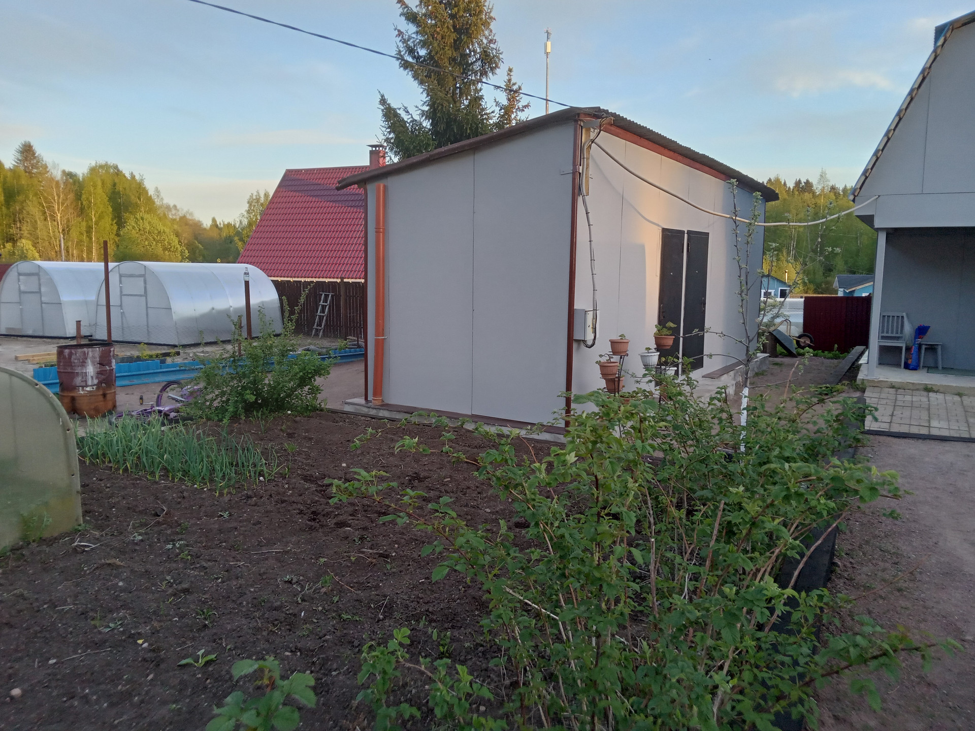 • Участок полностью разработан, дренирован, две теплицы, плодовые деревья: яблони, груша, жимолость, крыжовник, красная и черная смородина, цветы, малина, клубника.